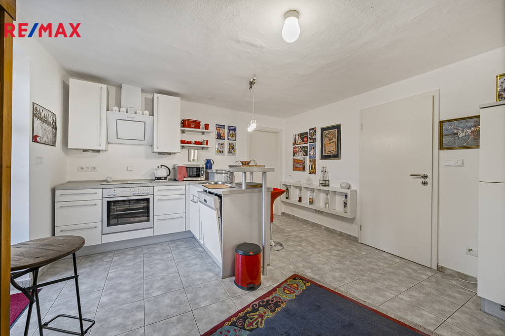Dispozice domu: První bytová jednotka se nachází v původní historické části celé nemovitosti a skládá se z prostorné kuchyně, velikého obývacího pokoje, ložnice, koupelny s WC a samostatného WC. Druhá bytová jednotka se skládá z obytného pokoje spojeného s kuchyní, ložnice a koupelny s WC. Obě bytové jednotky mají samostatný vstup z uzavřeného dvora, ale jsou též propojeny společnou stodolou, ve které se nachází kotelna. Nemovitost se prodává s kompletním vybavením.