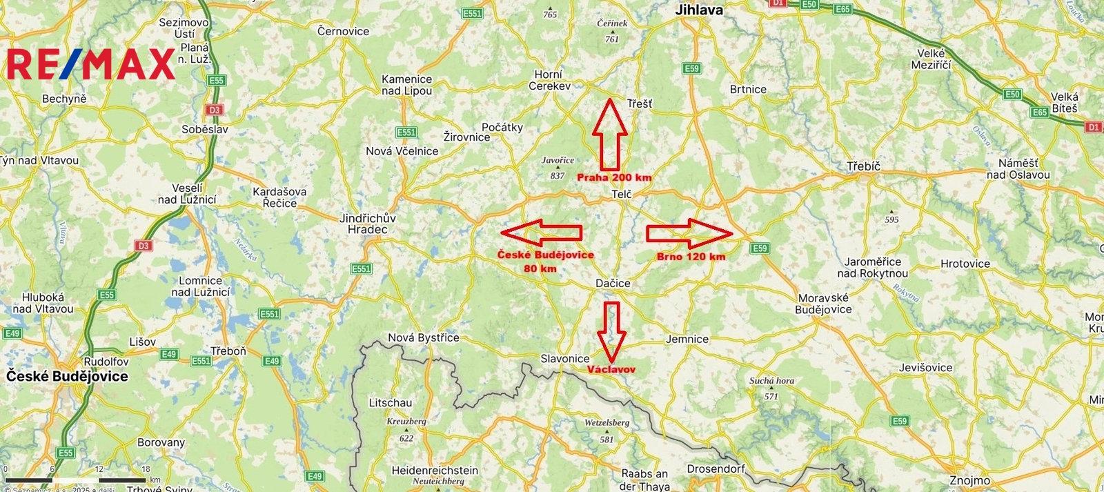 Nemovitost se nachází na konci malebné vesničky Václavov, která je místní částí obce Písečné, vzdálené 4 km a disponující základní občanskou jako je Obecní úřad, školka, knihovna, samoobsluha se smíšeným zbožím, restaurace apod. Historické město Slavonice vzdálené 7 km disponuje kompletní občanskou vybaveností. Dačice, město s rozšířenou působností, jsou vzdálené 20 km. Obec Václavov se nachází na pomezí Čech, Moravy a Rakouska, v malebné krajině plné lesů, rybníků a luk..