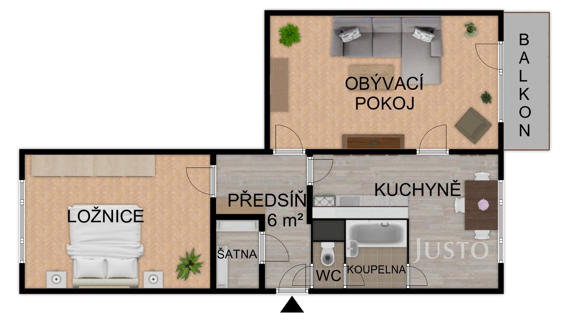 Byt disponuje užitnou plochou 60,6 m² a jedním z jeho výrazných benefitů je nový balkon o výměře 5,4 m².