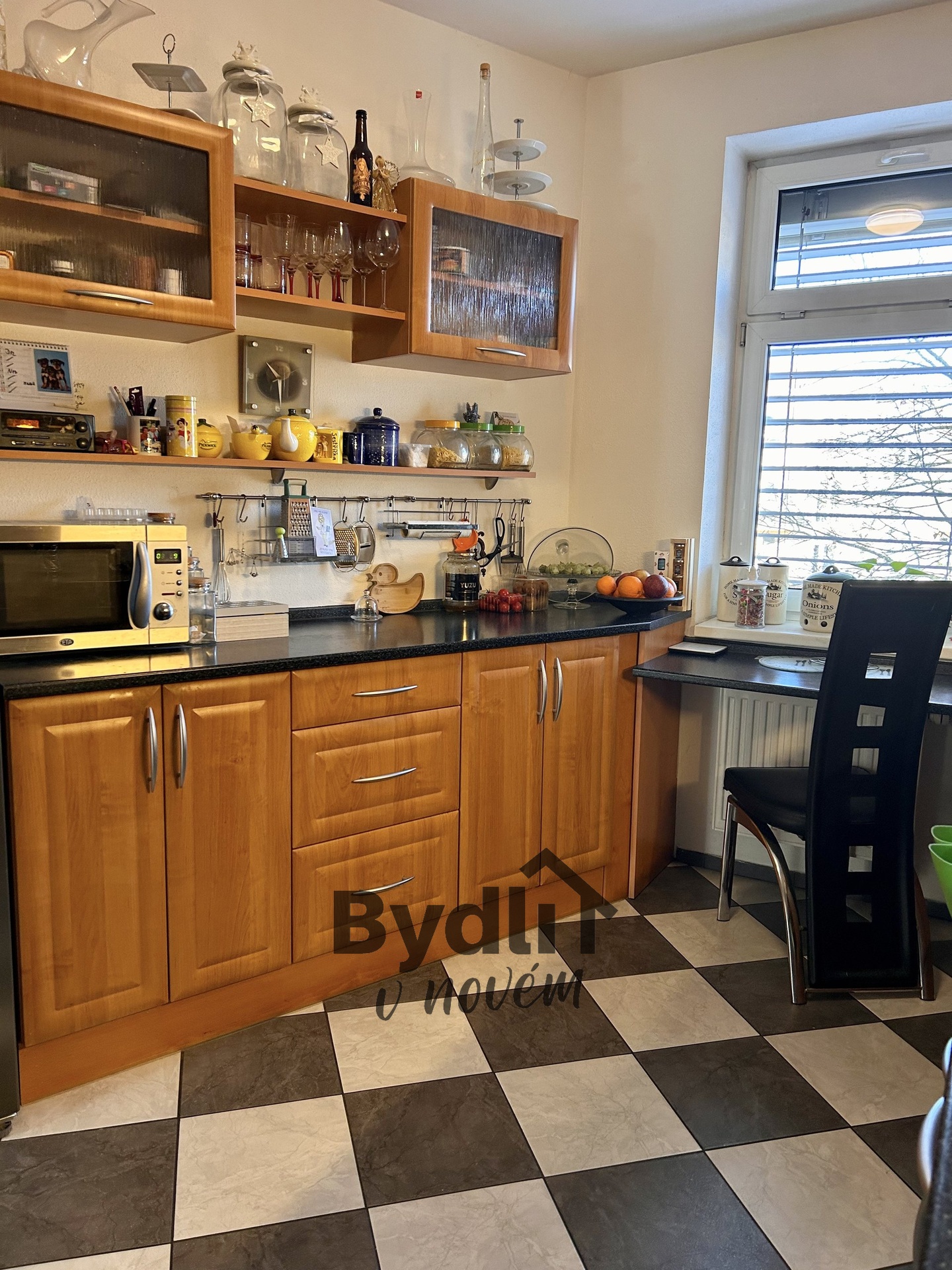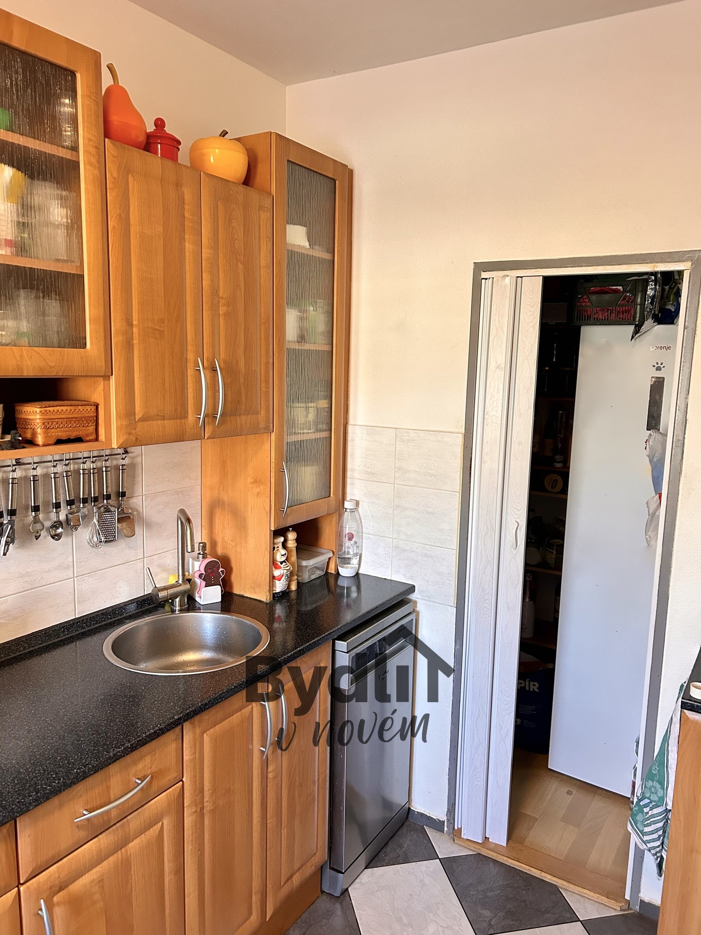 Dispozice je praktická a dobře řešená. Velkou výhodou je prostorná kuchyňská linka, která poskytuje dostatek pracovního i úložného místa. Součástí kuchyně je také praktická spižírna, ideální pro potraviny či kuchyňské vybavení.