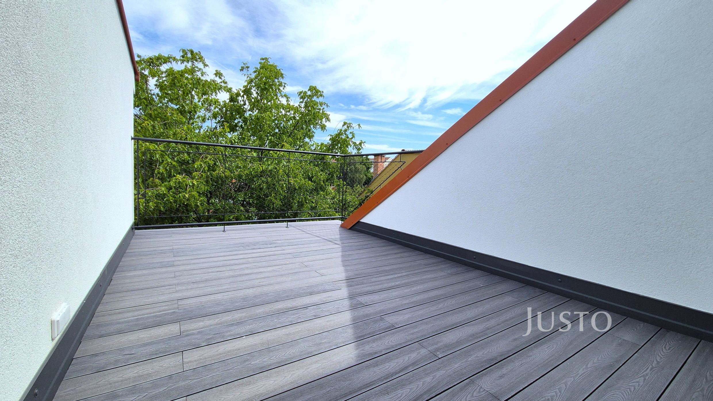 Byt o užitné ploše 67,3 m² a dispozici 2+kk se šatnou nabízí dostatek prostoru i pro náročnější zájemce. K dispozici je také terasa o výměře 10,9 m², orientovaná do zahrad – ideální pro relaxaci, posezení nebo letní večeře.
