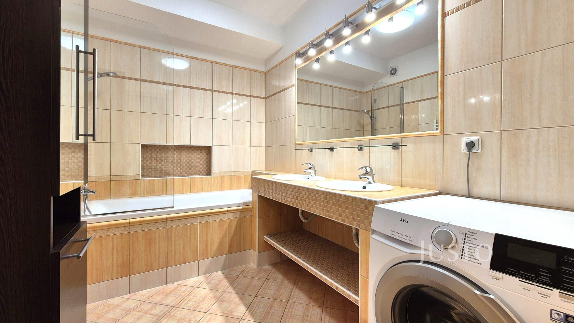 Byt je částečně zařízen – kuchyňská linka s vestavnými spotřebiči, pračka, vestavěné skříně, sedací souprava. Ostatní vybavení zobrazené na fotografiích není součástí nájmu.