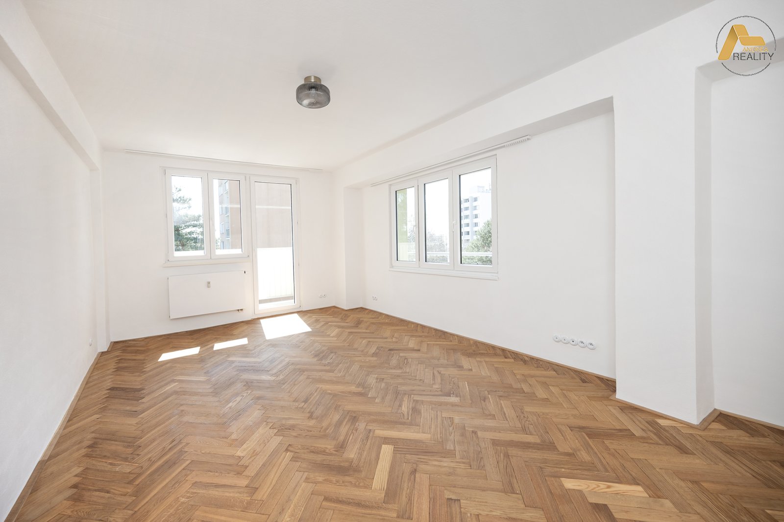 Za dveřmi vás přivítá vůně broušených a olejovaných parket, které pod nohama dodávají interiéru teplo, vůni dřeva a dotek elegance.