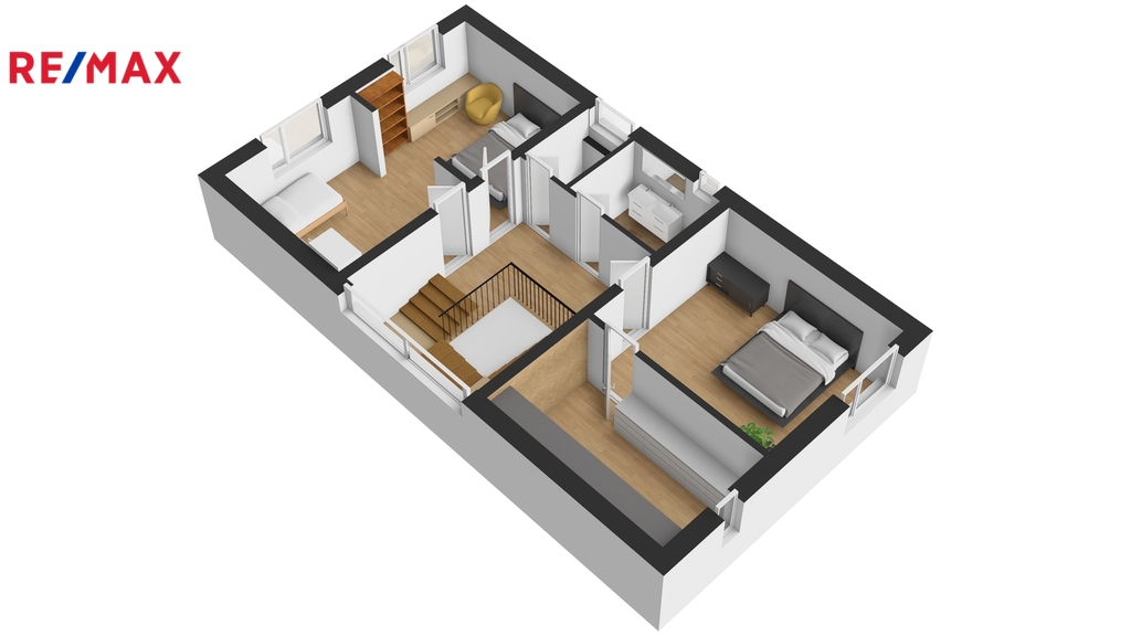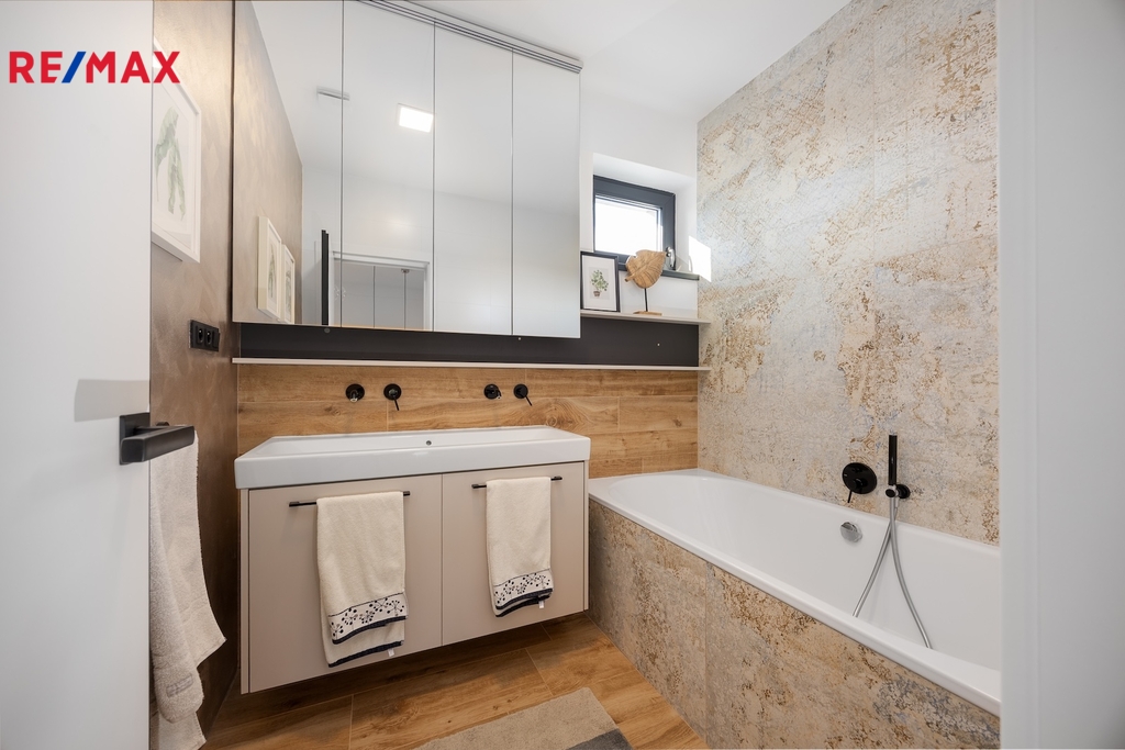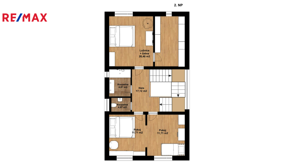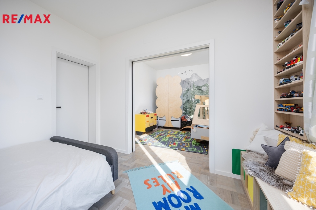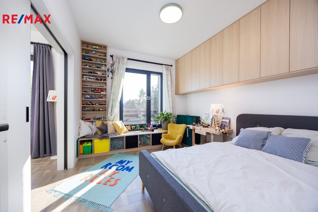 2. NP disponuje dvěma dětskými pokoji, hlavní ložnicí s prostornou šatnou, koupelnou s vanou a samostatnou toaletou.