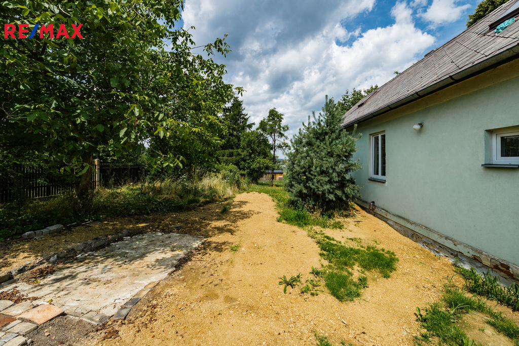 Na pozemku se nachází rodinný dům s užitnou plochou 99 m2 a garáží 17 m2. Naleznete zde chodbu, obývací pokoj s kuchyní, ložnici a pokoj se schodištěm. V druhém patře se pak nachází dva pokoje s chodbou a úložným prostorem. Dům je vytápěn kamny a pecí na tuhá paliva, disponuje plastovými okny kromě střešních oken a vlastní televizní anténou. Do domu je zavedena elektrická energie, přívod vodovodního řádu se nachází uprostřed zahrady a není zaveden do domu.
