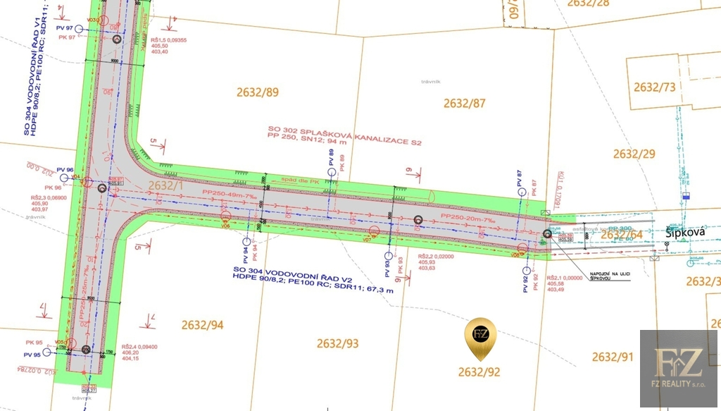 - Inženýrské sítě: vodovod, kanalizace, elektřina