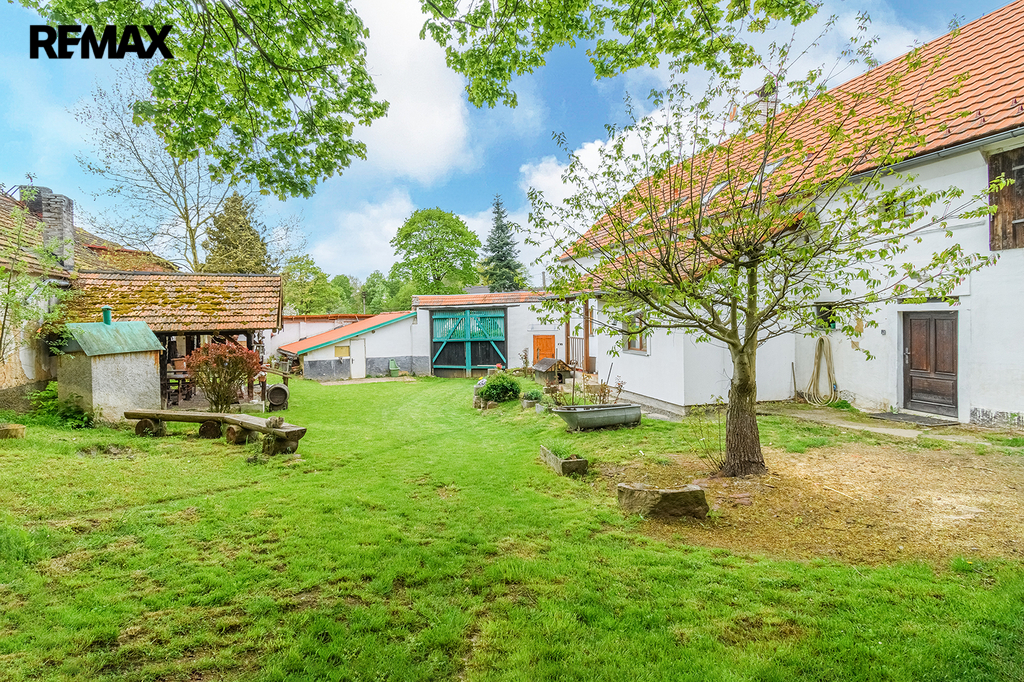 Součástí nemovitosti je udržovaná stodola 84 m2, sklad ovoce a zeleniny 13 m2, garáž 21 m2 a pergola 18 m2.