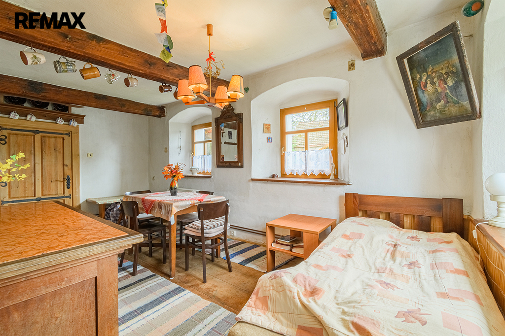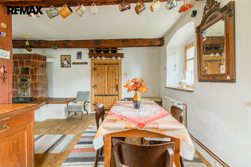V přízemí tohoto dvoupatrového rodinného domu na Vás dýchne atmosféra původního selského stavení, umocněna nádhernými kachlovými kamny a pecí na chleba. K dispozici jsou zde dva pokoje, kuchyně, koupelna a toalety. Součástí je také bývalá útulná hospůdka, ideální místo pro rodinné oslavy nebo příjemné posezení s přáteli.