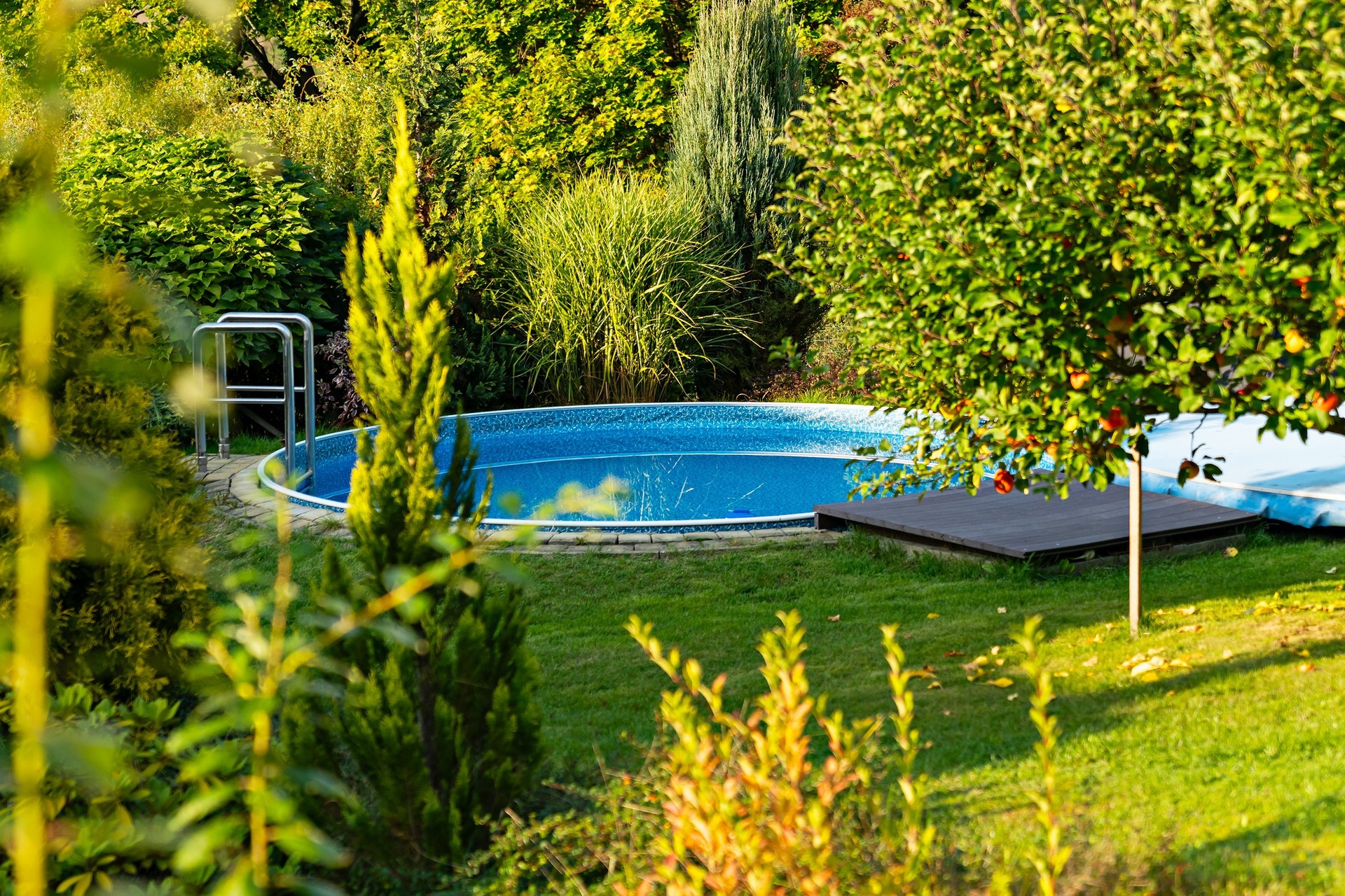 - krásná udržovaná zahrada domu, bazén