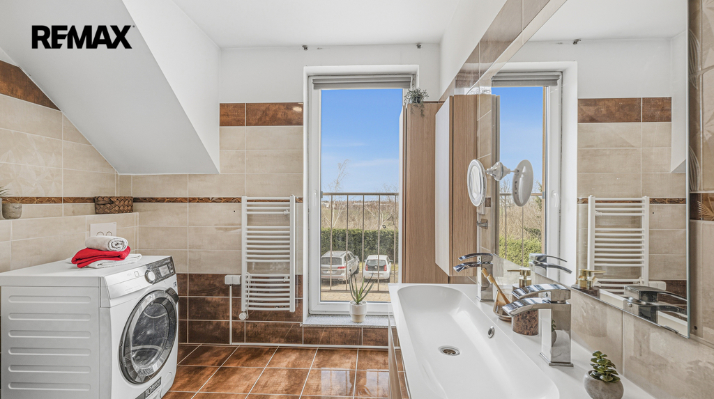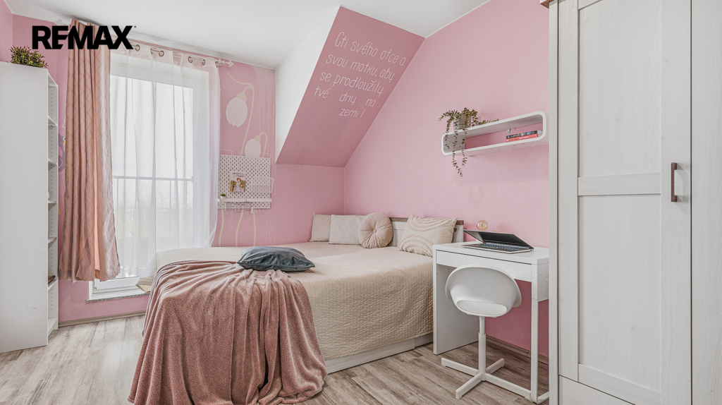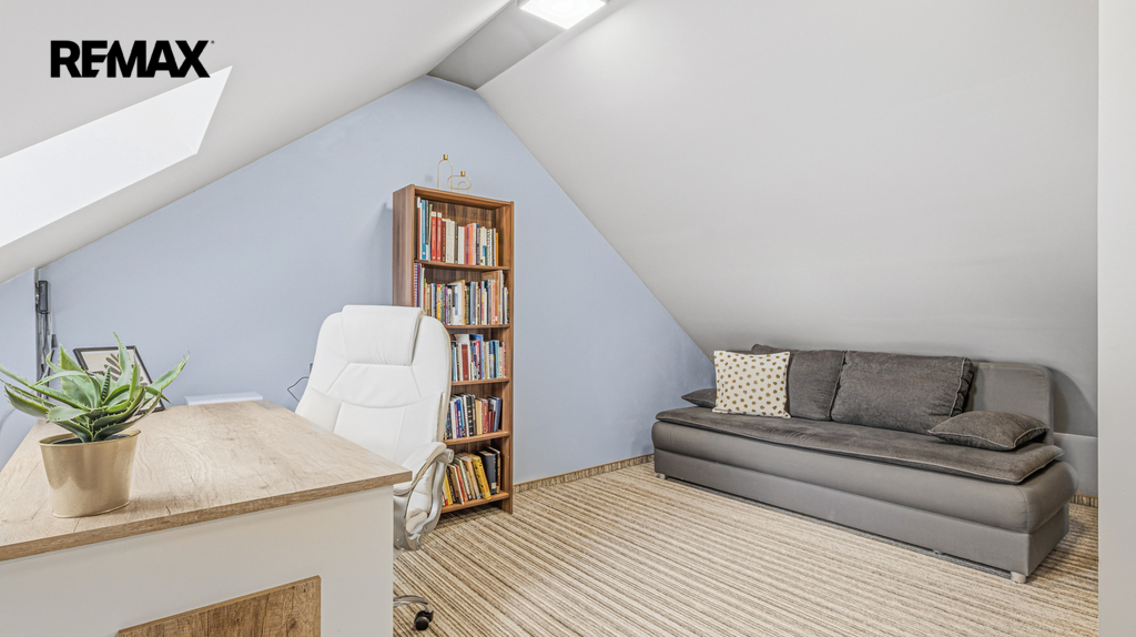 V prvním patře jsou další 3 samostatné pokoje a druhá koupelna s vanou. V podkroví se pak nachází další pokoj, je zde také možnost zřízení malé kuchyňky, jsou zde totiž vyvedeny rozvody studené a teplé vody i odpad.