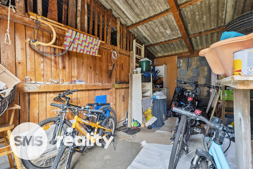 K bytu náleží soukromá zahrádka, která je ideální pro odpočinek, posezení s rodinou či přáteli, dále samostatná garáž o výměře cca 14 m² a sklep o velikosti 6 m². V domě je k dispozici také prostorná kočárkárna a sušárna, což zvyšuje komfort každodenního užívání.