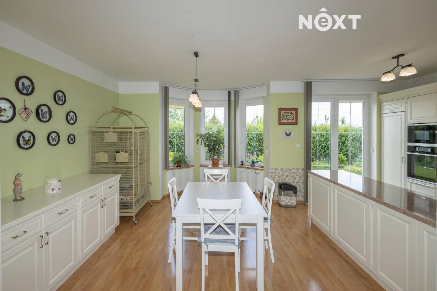Tento dům je nejen velmi dobře funkčně řešený, ale i s láskou udržovaný. Z oken na jižní straně domu je výhled do zahrady s ovocným sadem a severní strana umožňuje krásný a ničím nerušený výhled do okolních polí a lesů. Díky své dispozici, úložným prostorům, krásné zahradě a relaxačním zónám (bazén, zimní zahrada, krb) je ideálním místem pro rodinný život.