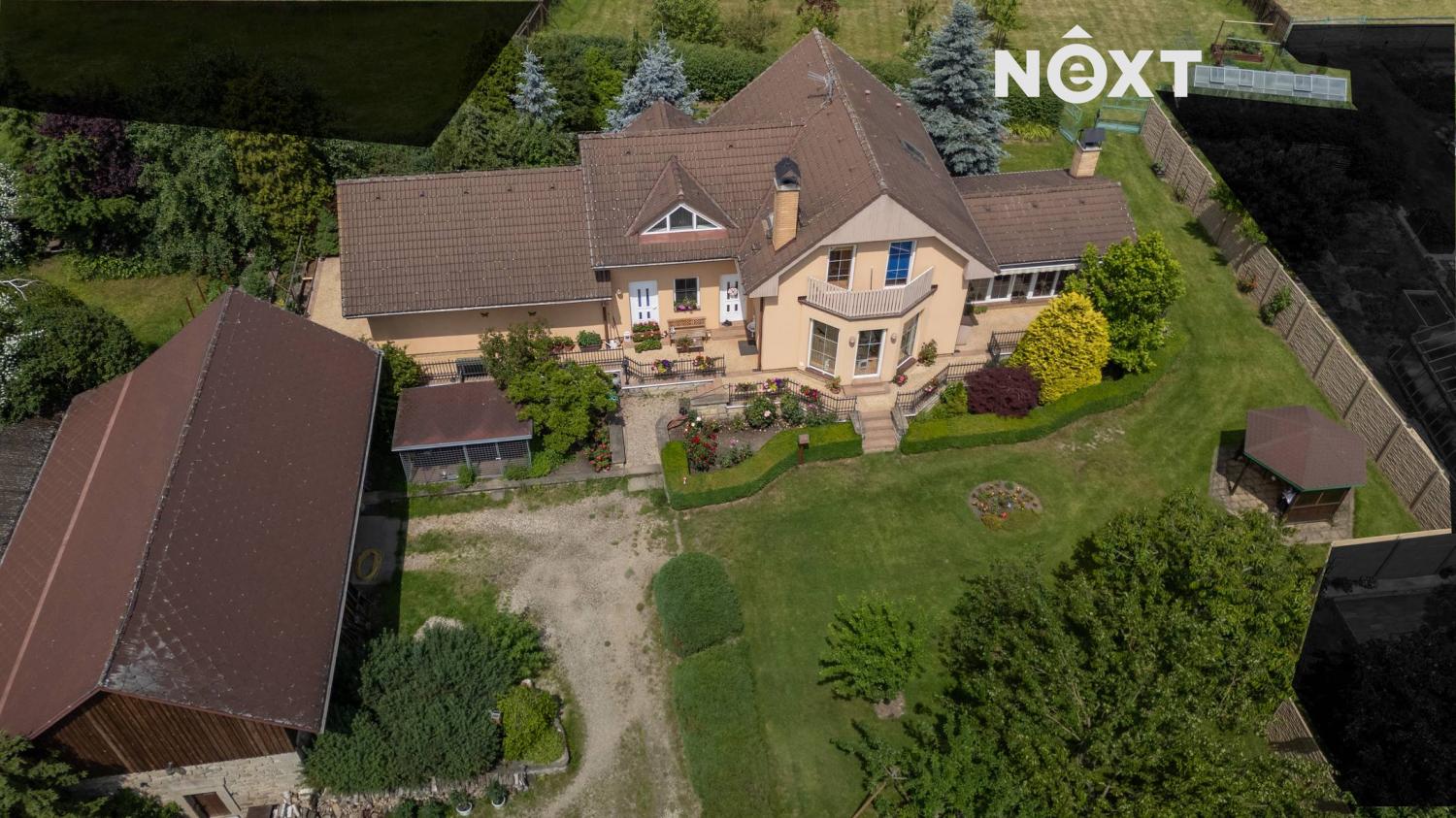 • Rozlehlá zahrada (3 213 m²) s ovocným sadem, skleníkem, udržovanou zelení a altánem