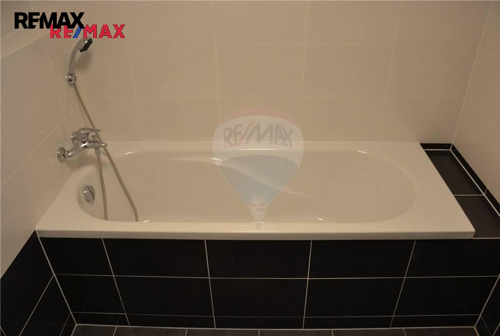 Koupelna je s vanou a toaletou. K bytu náleží vlastní balkon ( cca 4 m2), sklep přímo na patře ( cca 3 m2) a garážové stání.