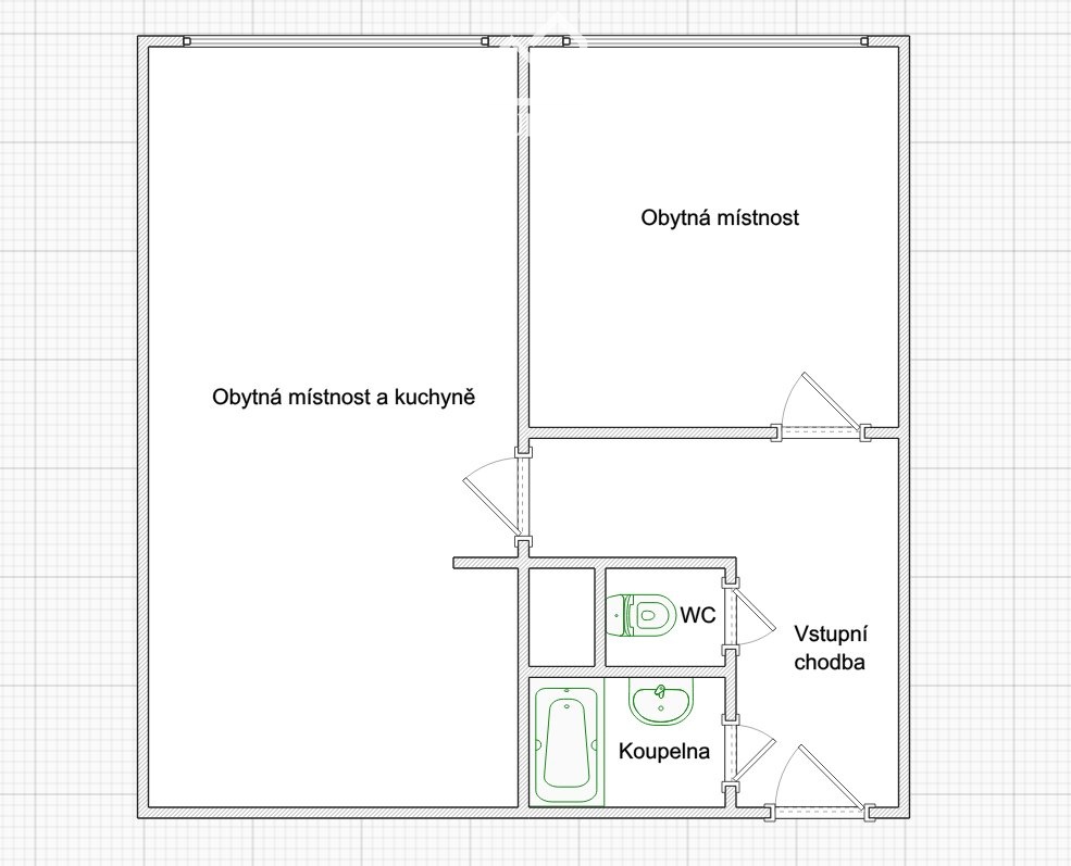 - Dispozice bytu: 2+kk