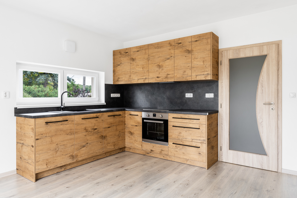 Součástí vybavení je moderní kuchyňská linka s vestavěnou elektrickou troubou, varnou deskou, digestoří a myčkou nádobí. K dalšímu vybavení patří koupelnový nábytek, dvoudrážková kolejnice pro uchycení záclon a závěsů nad každým oknem a kompletní osvětlení ve všech místnostech.