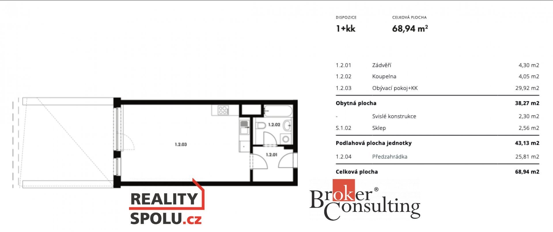 | Dispozice/podlahová plocha: | 1+kk/39 m² |