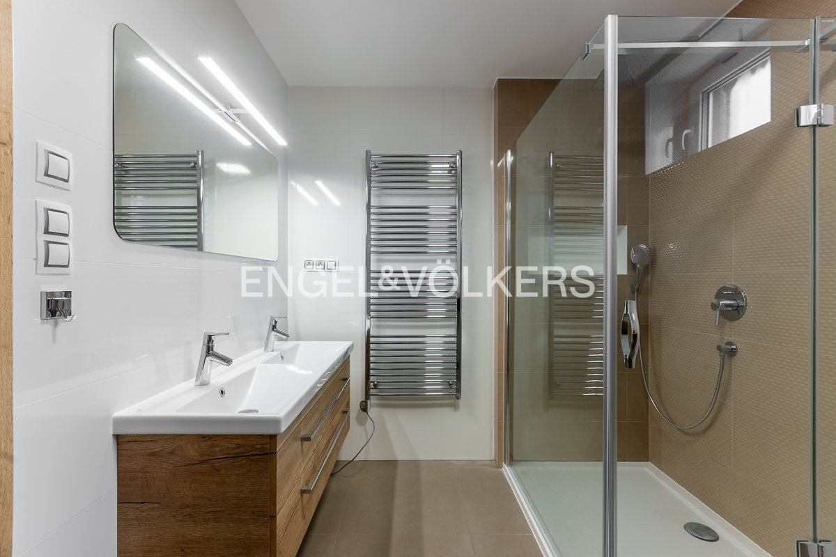 Pro dlouhodobý pronájem nabízíme moderní a krásný byt 3+kk na Doubravce. K budově projdeme brankou a poté se dostaneme ke vchodovým dveřím, kde vyjdeme po schodech do 4. nadzemního podlaží, ve kterém se byt nachází. Při vstupu do bytu vkročíme do prostorné předsíně (11,7 m²). Z předsíně se dostaneme na toaletu (2,5 m²) a do moderní koupelny (6,8 m²), kde je k dispozici elektrický žebřík na vytápění. Následují dva samostatné pokoje (14,1 m² a 18,2 m²). Jádrem bytu je obytná místnost (44,1 m²) s kuchyňským koutem, která je srdcem celého bytu. Tento byt nabízí moderní bydlení, kde je myšleno na každý detail. Absolutní komfort po celý rok zaručuje vytápění bytu řešené tepelným čerpadlem, které v letních měsících zajišťuje podlahové chlazení. Kuchyně je moderní a designová, s vestavěnou mikrovlnkou a myčkou.