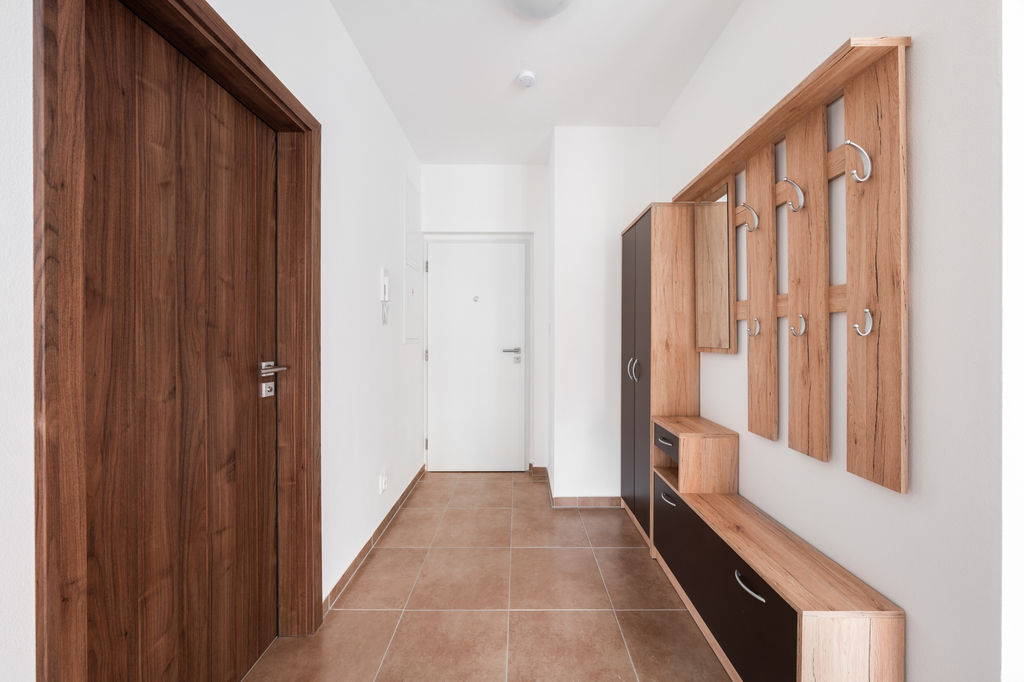 Byt je vybaven kuchyňskou linkou včetně vestavné elektrické trouby, sklokeramické varné desky, digestoře a myčky nádobí. Součástí vybavení je také předsíňová stěna s věšákem a botníkem, kompletní osvětlení a venkovní žaluzie ve všech oknech.
