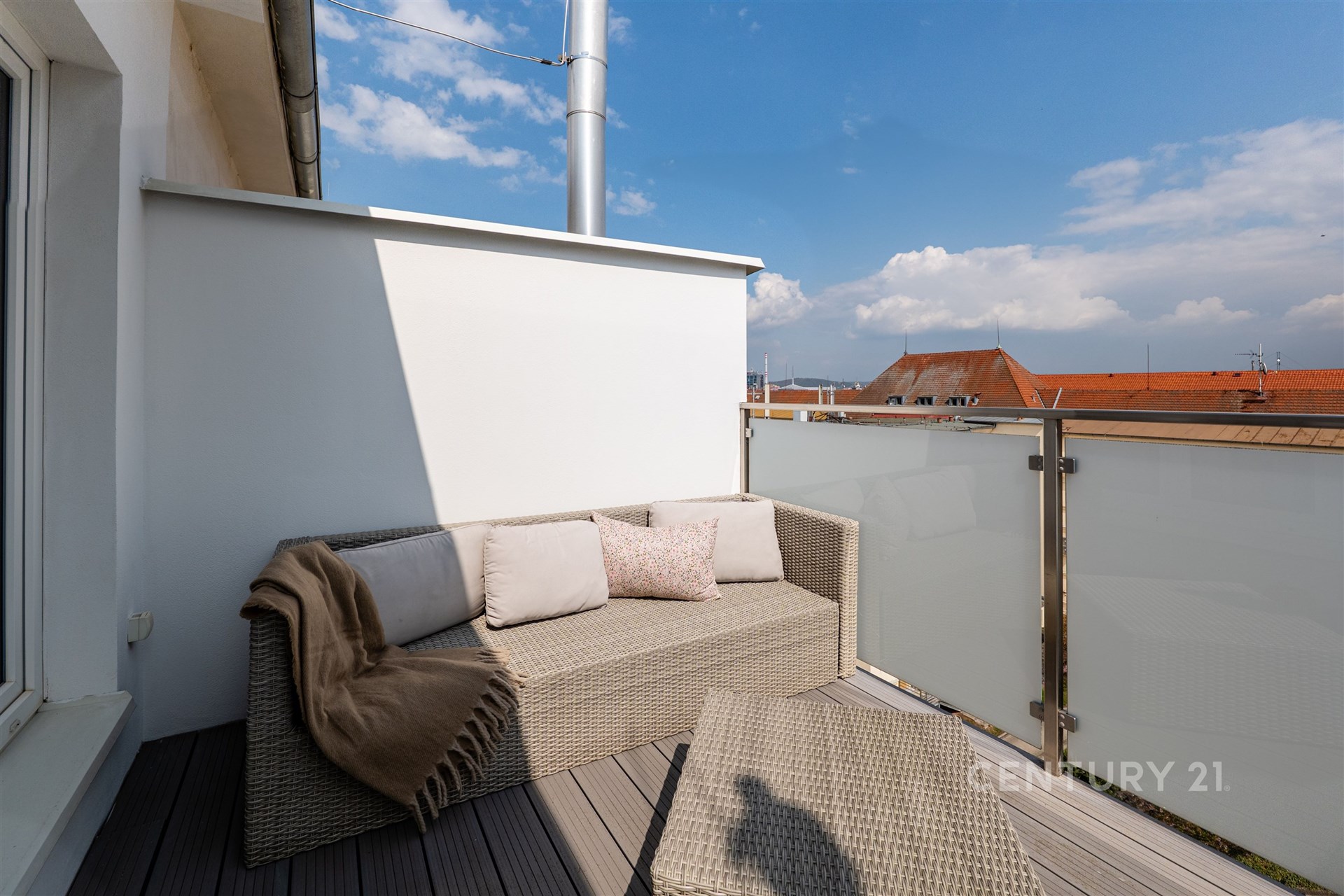 A pak jsou tu dveře na terasu (7,7 m²), která změní váš denní rytmus. Ranní káva na čerstvém vzduchu. Tiché večery se sklenkou vína. Výhled na Plzeň, který vás nepřestane bavit. Díky orientaci do vnitrobloku si navíc užijete klid a soukromí, které dnes není samozřejmostí.