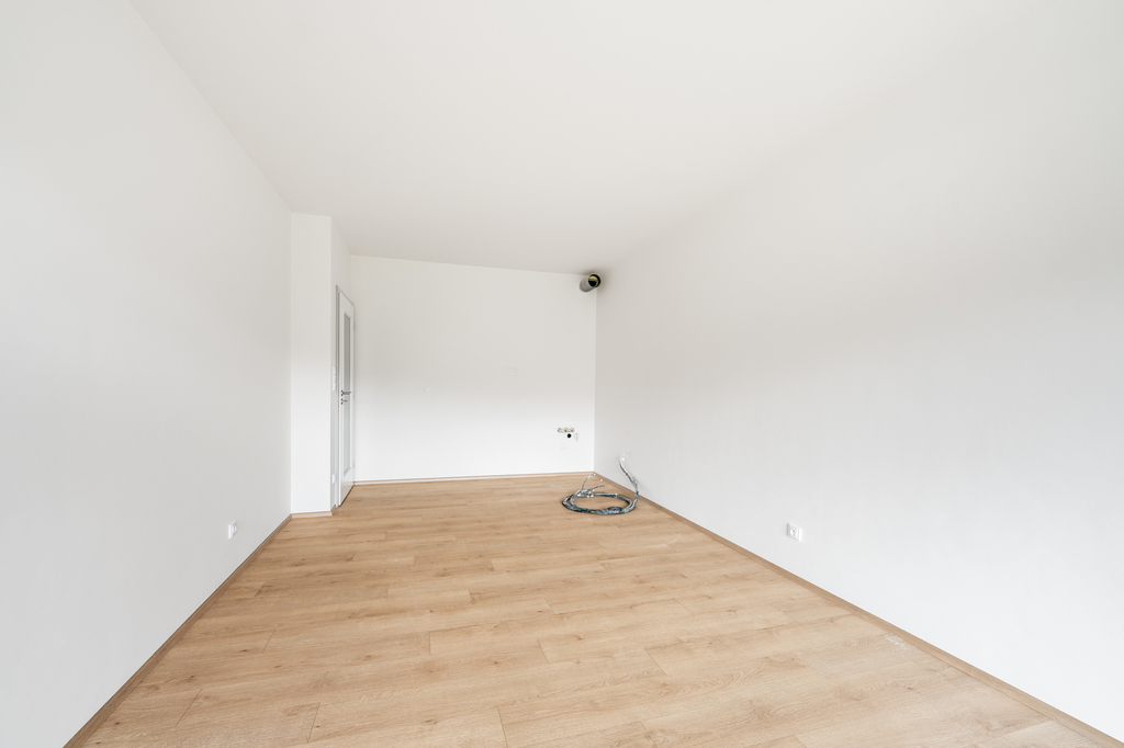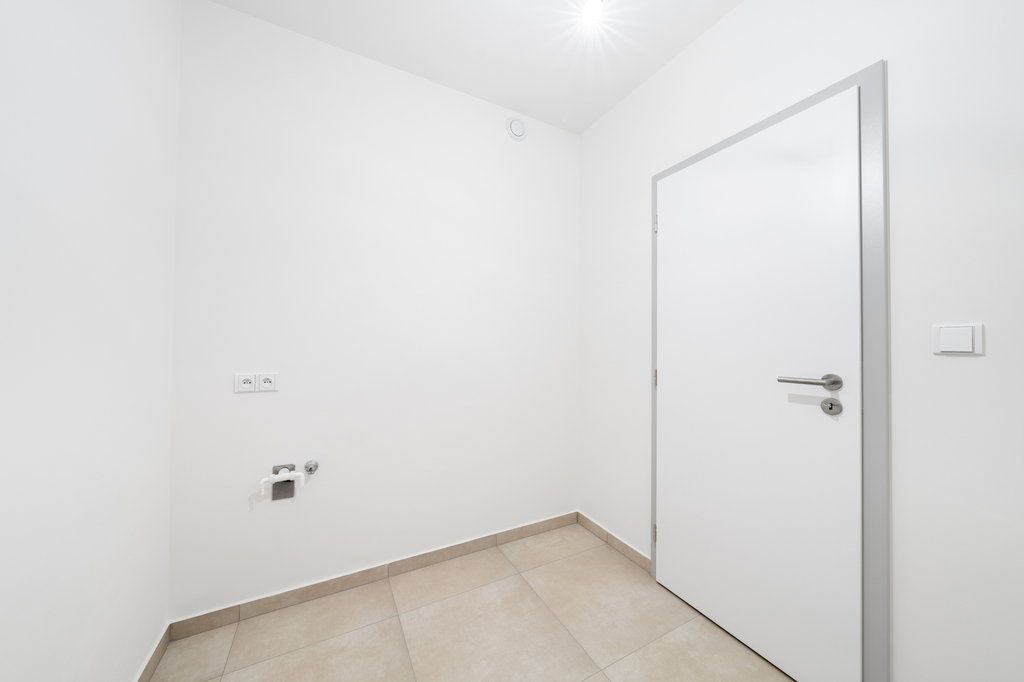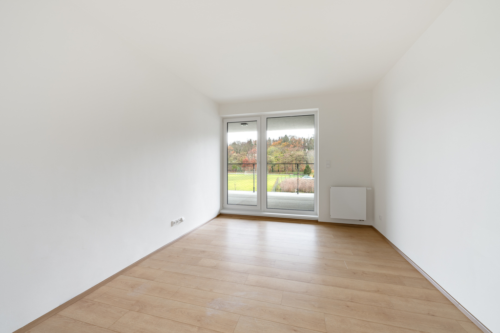 Dispozice bytu je velmi praktická. Po vstupu do bytu se nachází předsíň, na kterou navazuje centrální chodba zajišťující přístup do všech částí bytu, a to do obývacího pokoje s kuchyňským koutem, ložnice, komory, koupelny a samostatné toalety. Dominantou obou obytných místností jsou velkoformátová francouzská okna, která interiéru dodávají množství denního světla a zároveň umožňují přímý vstup na terasu. Ta se rozprostírá po celé šířce bytu a nabízí ideální prostor pro odpočinek i posezení na čerstvém vzduchu.