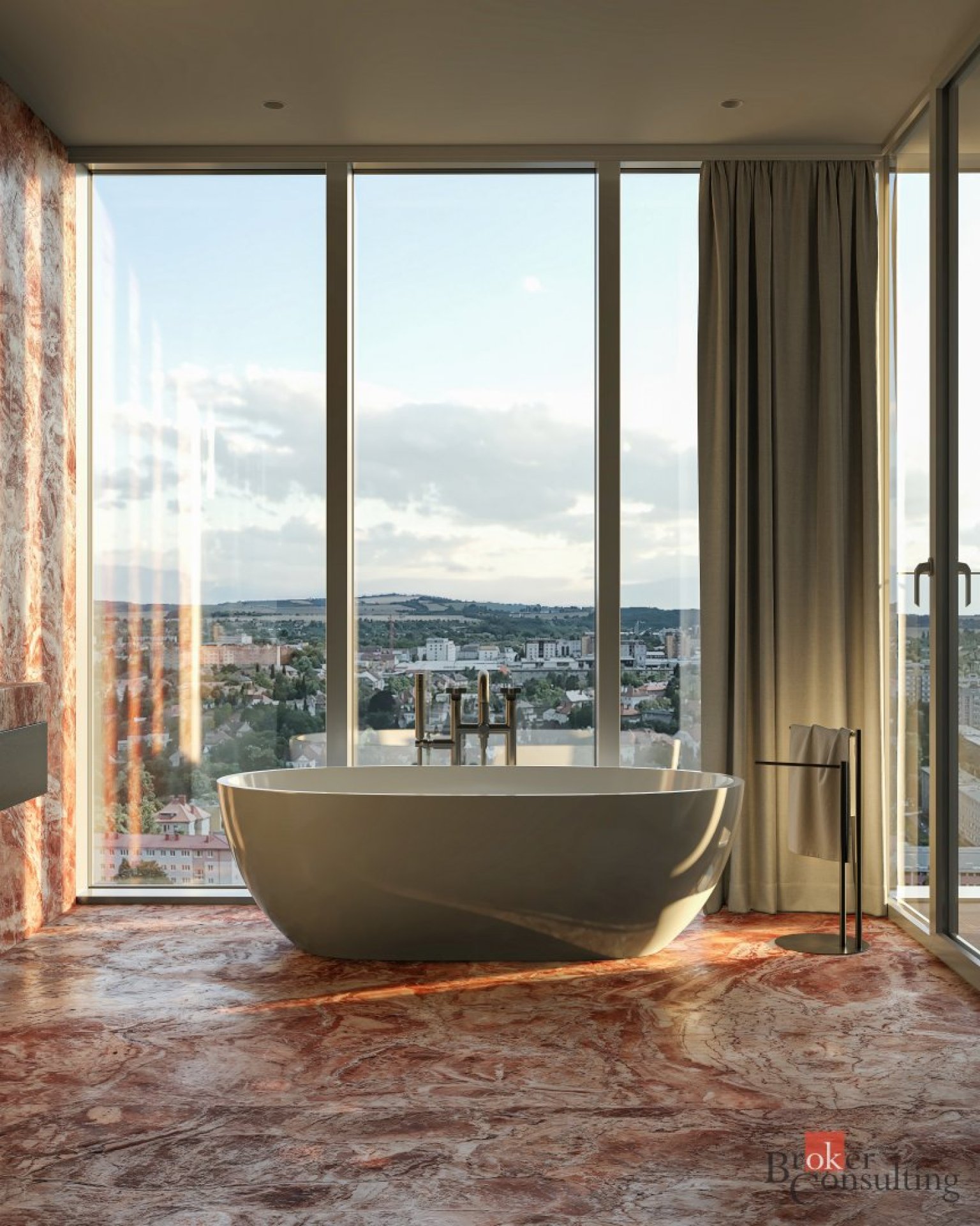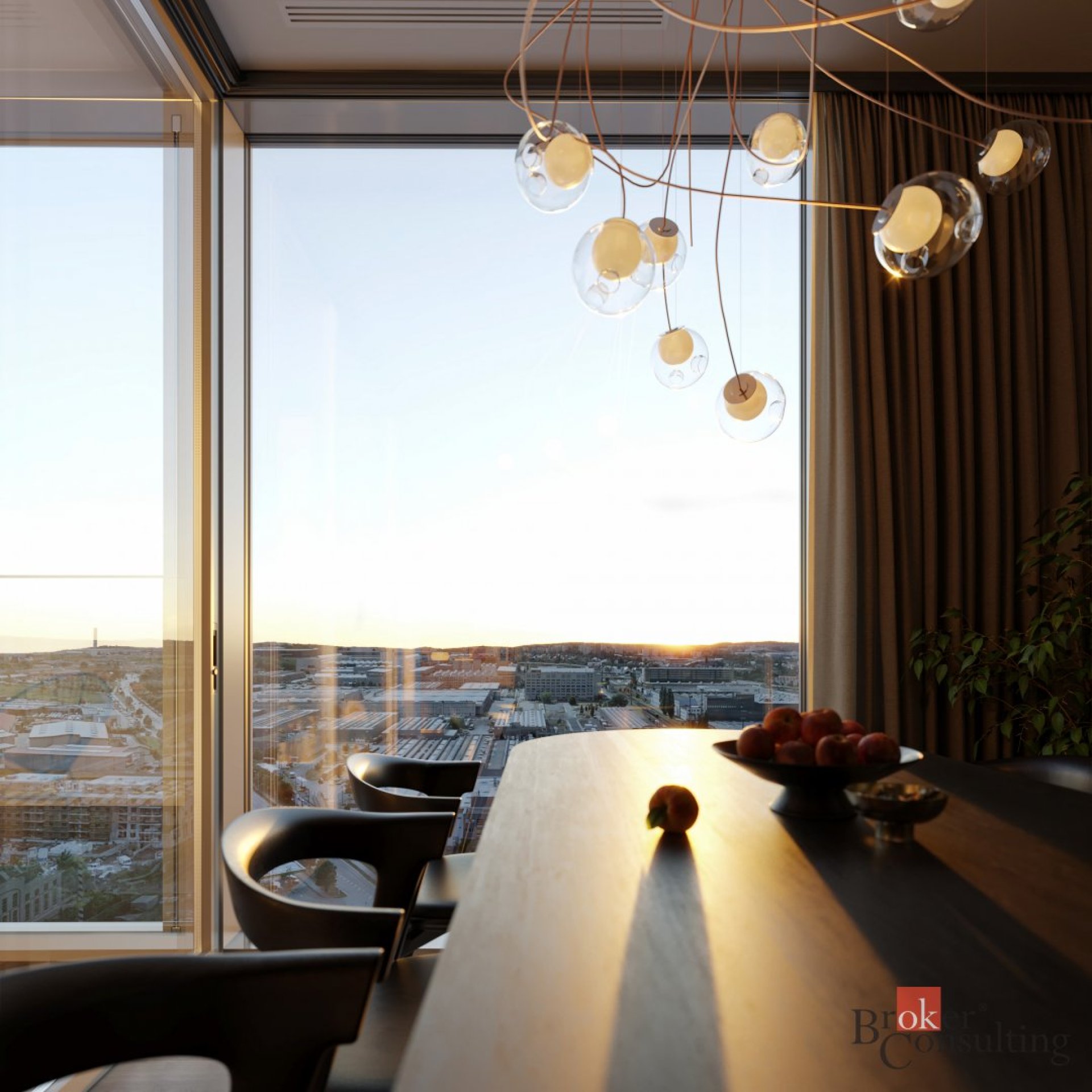 Rezidenční část projektu je rozdělena do čtyř úrovní standardu, které umožňují vybrat si bydlení přesně podle nároků a životního stylu budoucích majitelů. Každý standard nabízí vysokou kvalitu provedení, liší se však rozsahem použitých materiálů, vybavením a úrovní komfortu. Byty v nejvyšších patrech pak mají možnost využívat společné klubové patro ve 23. a 24. patře, kde je k dispozici fitness, wellness s bazénem, dětský koutek a místa k relaxaci. Součástí projektu je také recepce ve vstupní lobby a denní bistro, které jsou umístěny ve výškové budově, podzemní parkoviště a mnoho dalšího.