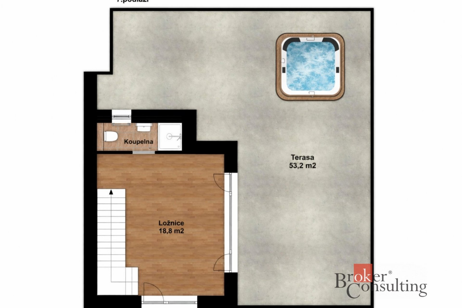 Vzhledem ke dvou podlažím, velkým terasám a luxusnímu vybavení bytu se jedná o nemovitost určenou zejména tomu, kdo hledá ojedinělý způsob bydlení, který běžné byty nejsou schopny nabídnout.
