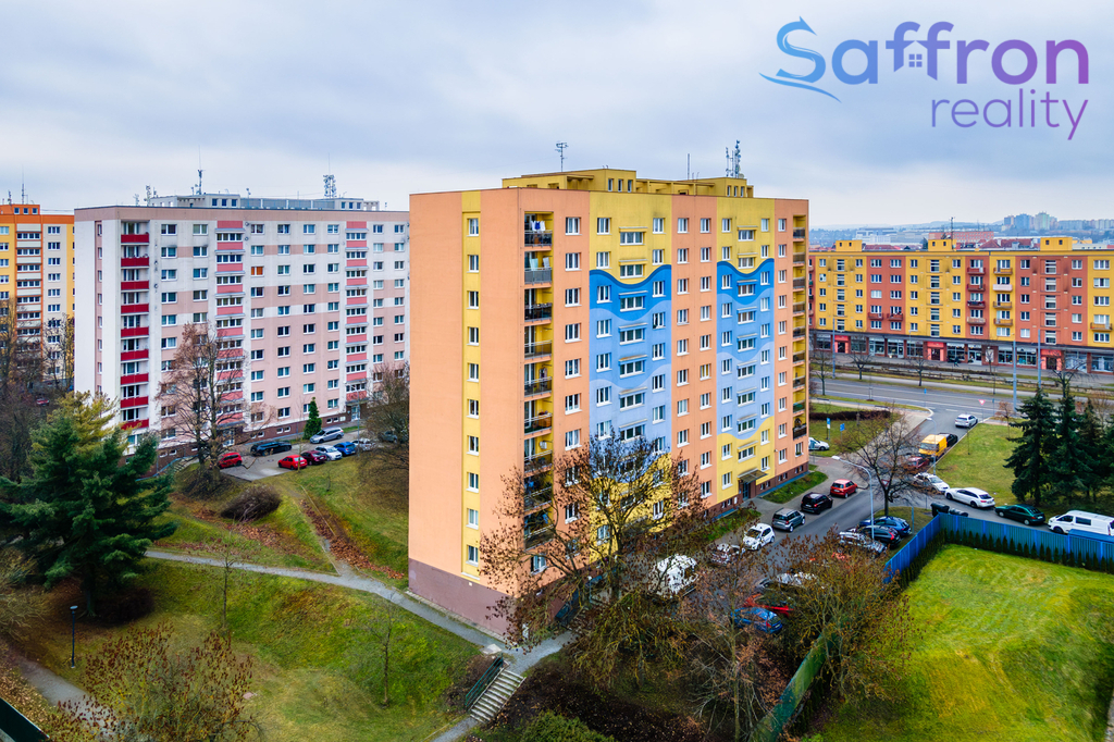 Dům je panelové konstrukce a je vybaven výtahem. K bytu náleží sklepní kóje, která poskytuje úložný prostor. Umístění v 6. patře zajišťuje dostatek denního světla a otevřený výhled do okolí.