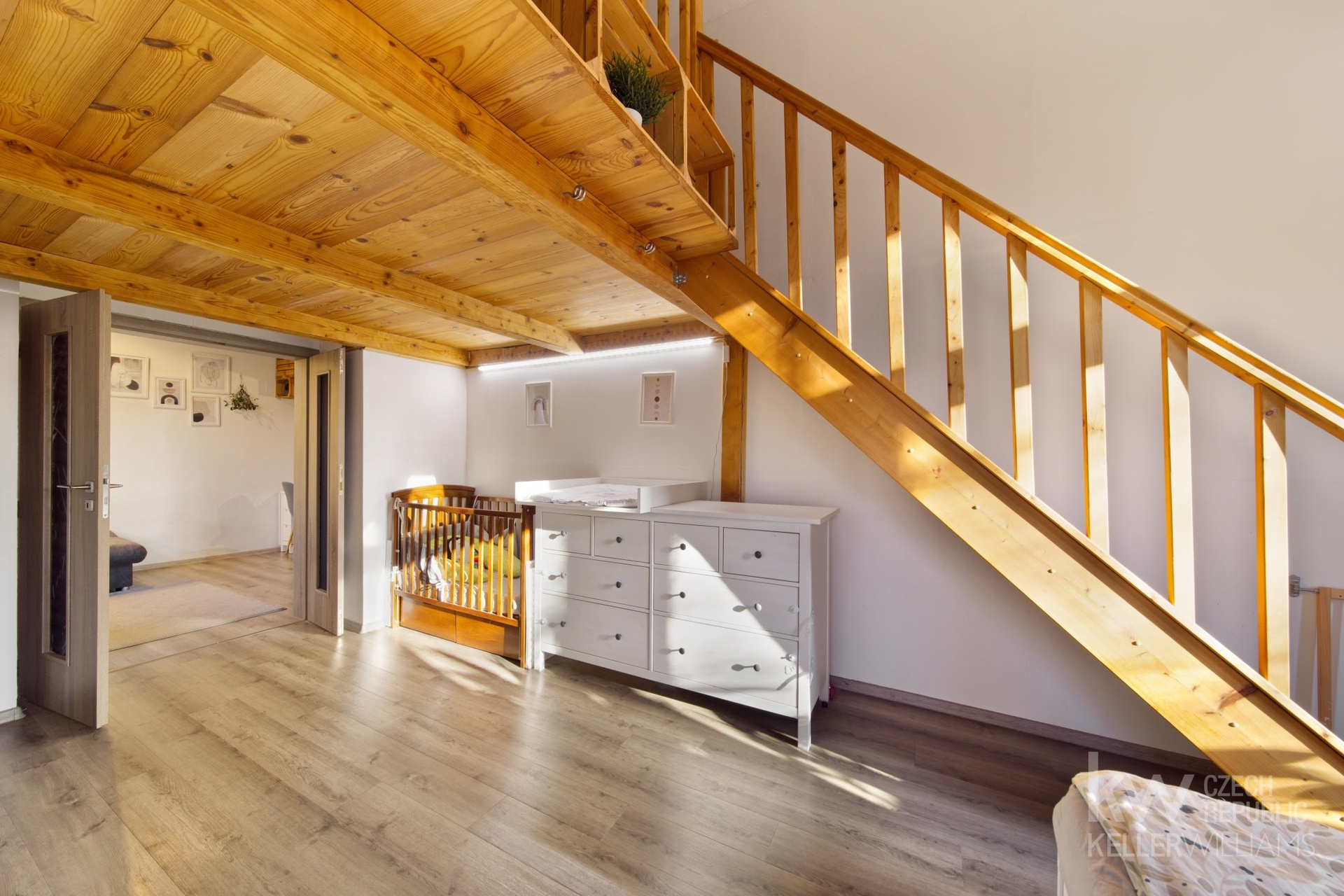 Součástí prodeje je i rozměrný sklep o velikosti 20 m2. Polovina je přestavěna na sklad nebo lze využít jako relaxační prostor.