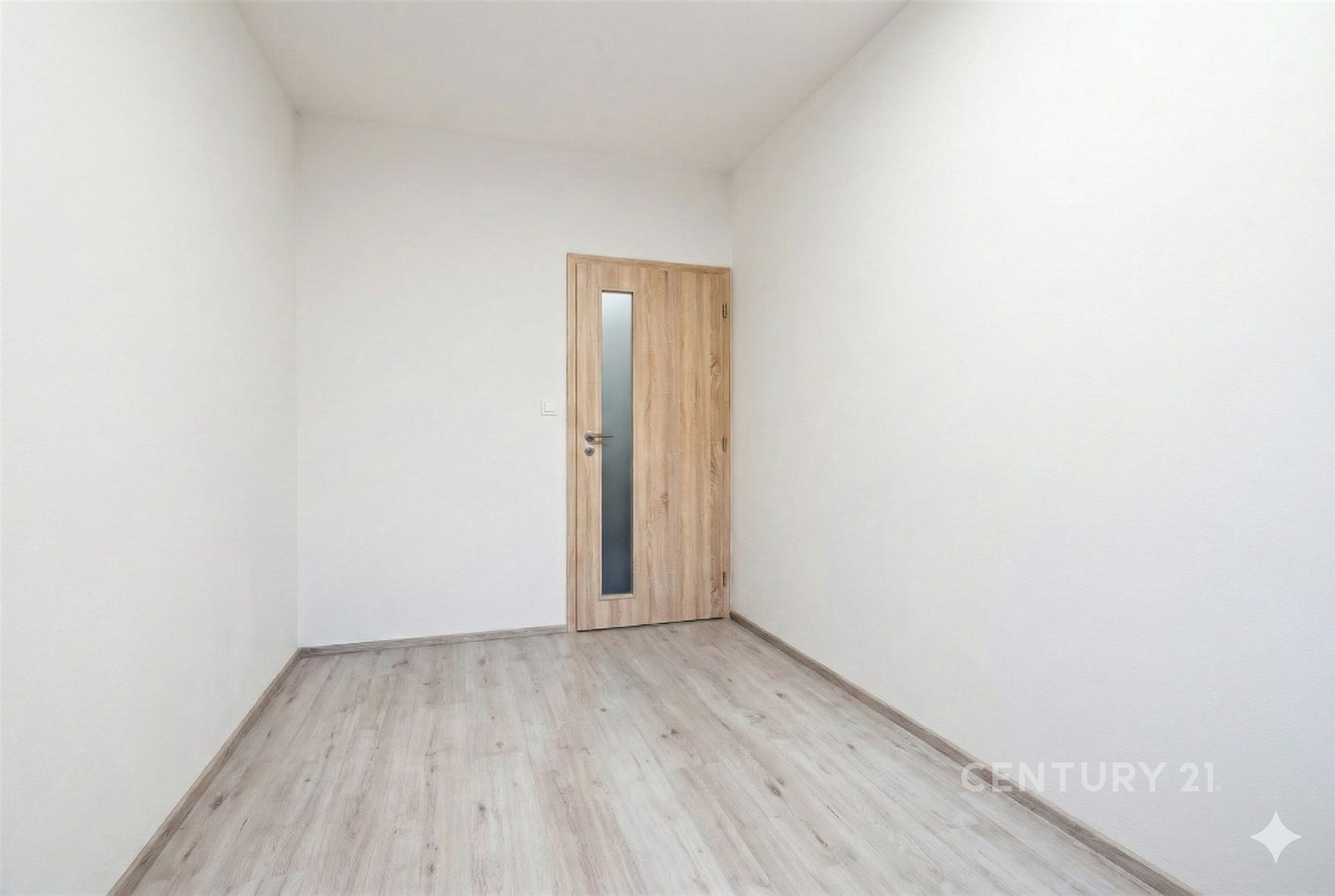 Byt disponuje obývacím pokojem s kuchyňským koutem v tmavším, elegantním dekoru. Ložnice nabízí dostatek soukromí a klidné zázemí. Koupelna je vybavena rohovou vanou, která poskytuje vyšší komfort než běžný sprchový kout.