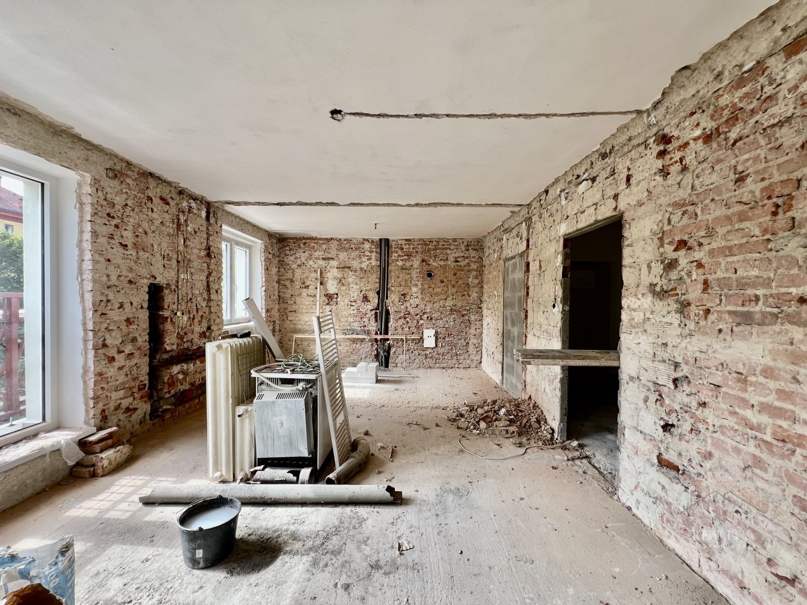 Fotografie v inzerátu ukazují aktuální stav rekonstrukce a připojené vizualizace slouží jako inspirace k tomu, jak může váš nový domov vypadat.