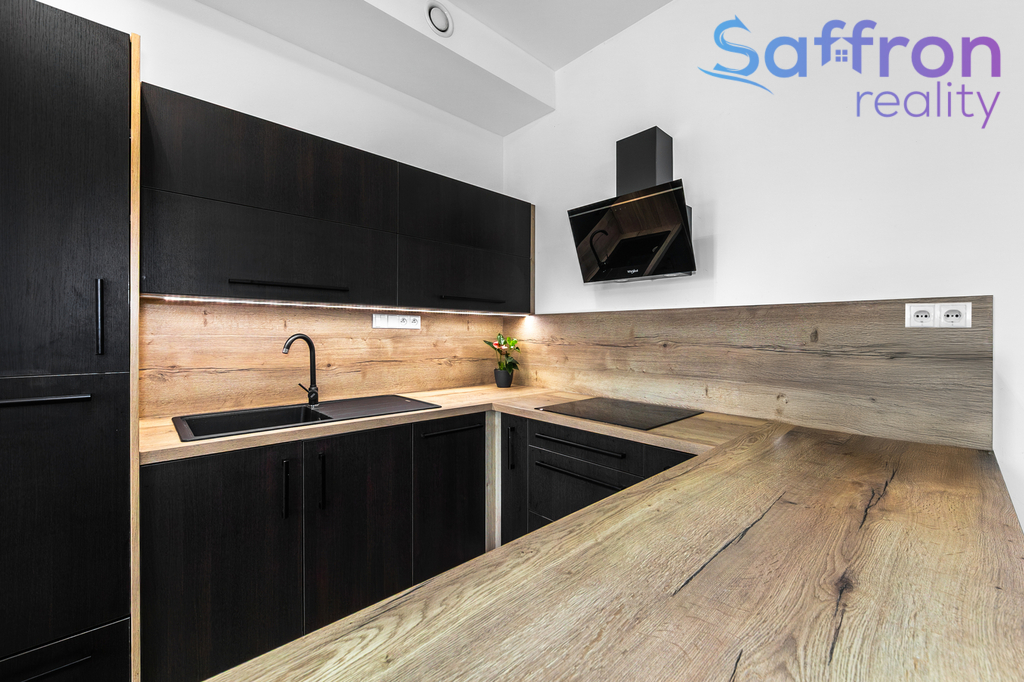 Byt se nachází v novostavbě a nabízí komfortní, moderní bydlení s důrazem na kvalitu a praktičnost. Samozřejmostí je rekuperace, která zajišťuje stálý přísun čerstvého vzduchu a zdravé vnitřní prostředí. Dominantou je prostorný obývací pokoj s kuchyňským koutem v elegantním designu, kde se snoubí tmavé prvky s dekorem dřeva a vytváří nadčasový a útulný interiér. Velkoformátová francouzská okna zajišťují dostatek denního světla a umožňují přímý vstup na soukromou zahrádku, která je ideálním místem pro relaxaci, posezení s rodinou či přáteli, ale také například pro pěstování vlastní zeleniny ve vyvýšených záhonech.