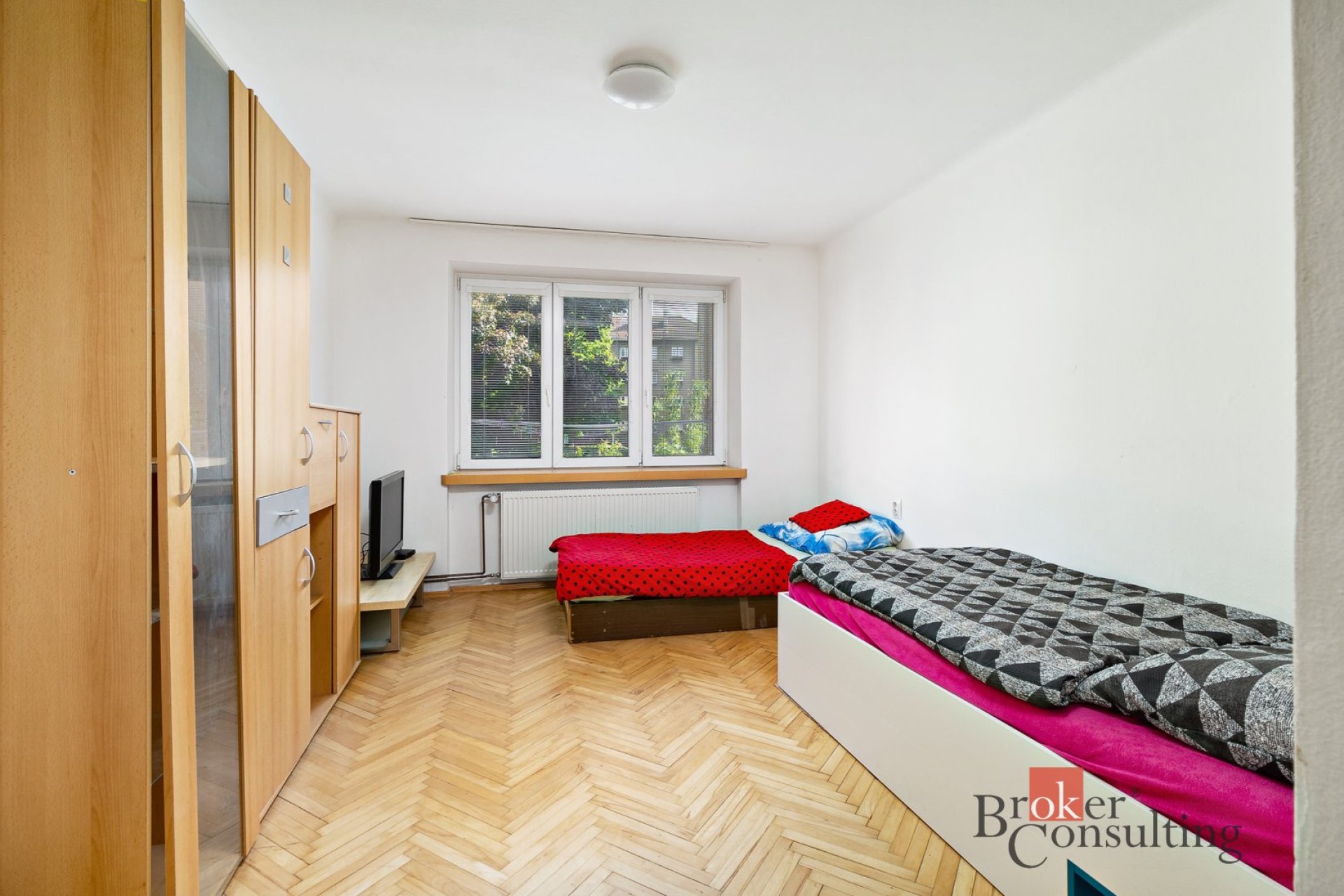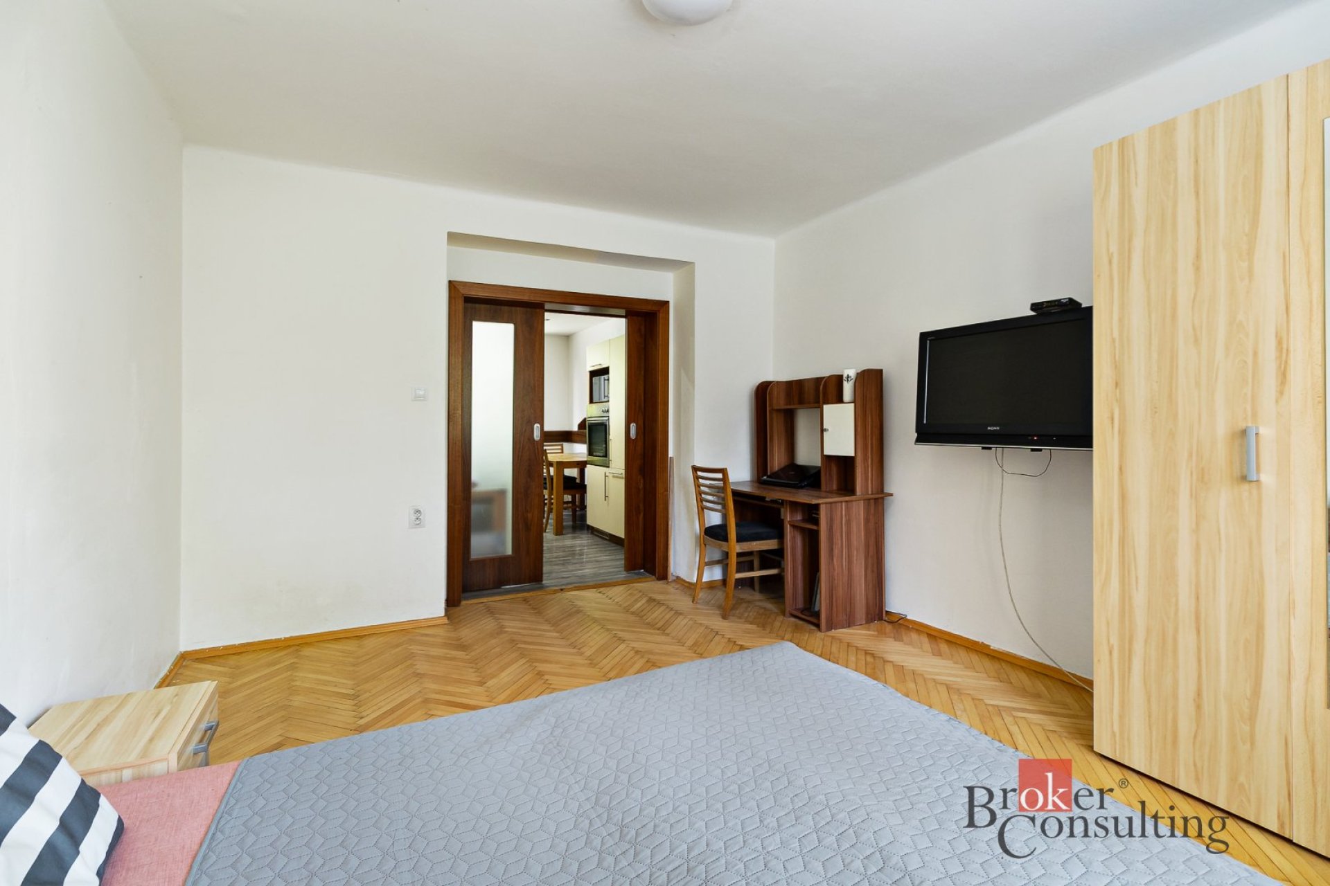 Dispozice bytu zahrnuje vstupní chodbu, úložnou komoru, koupelnu s vanou a toaletou, kuchyň, obývací pokoj a ložnici. Byt prošel před cca 9 lety rekonstrukcí – nové rozvody elektroinstalace, renovace parket, interiérové dveře na míru od truhláře, bezpečnostní a protipožární vstupní dveře, plastová okna a další.