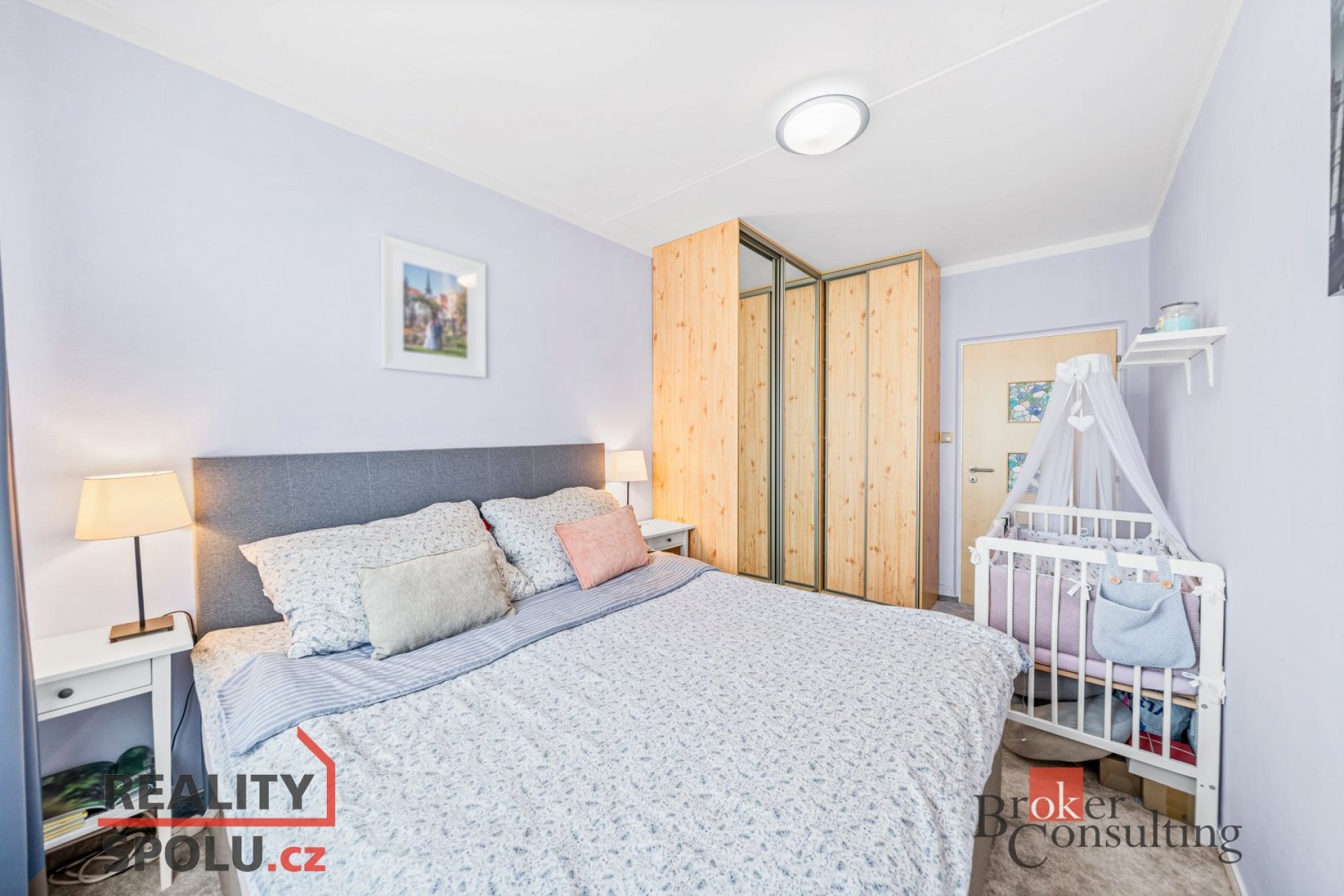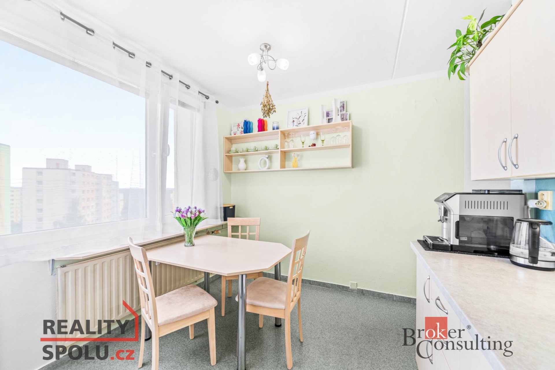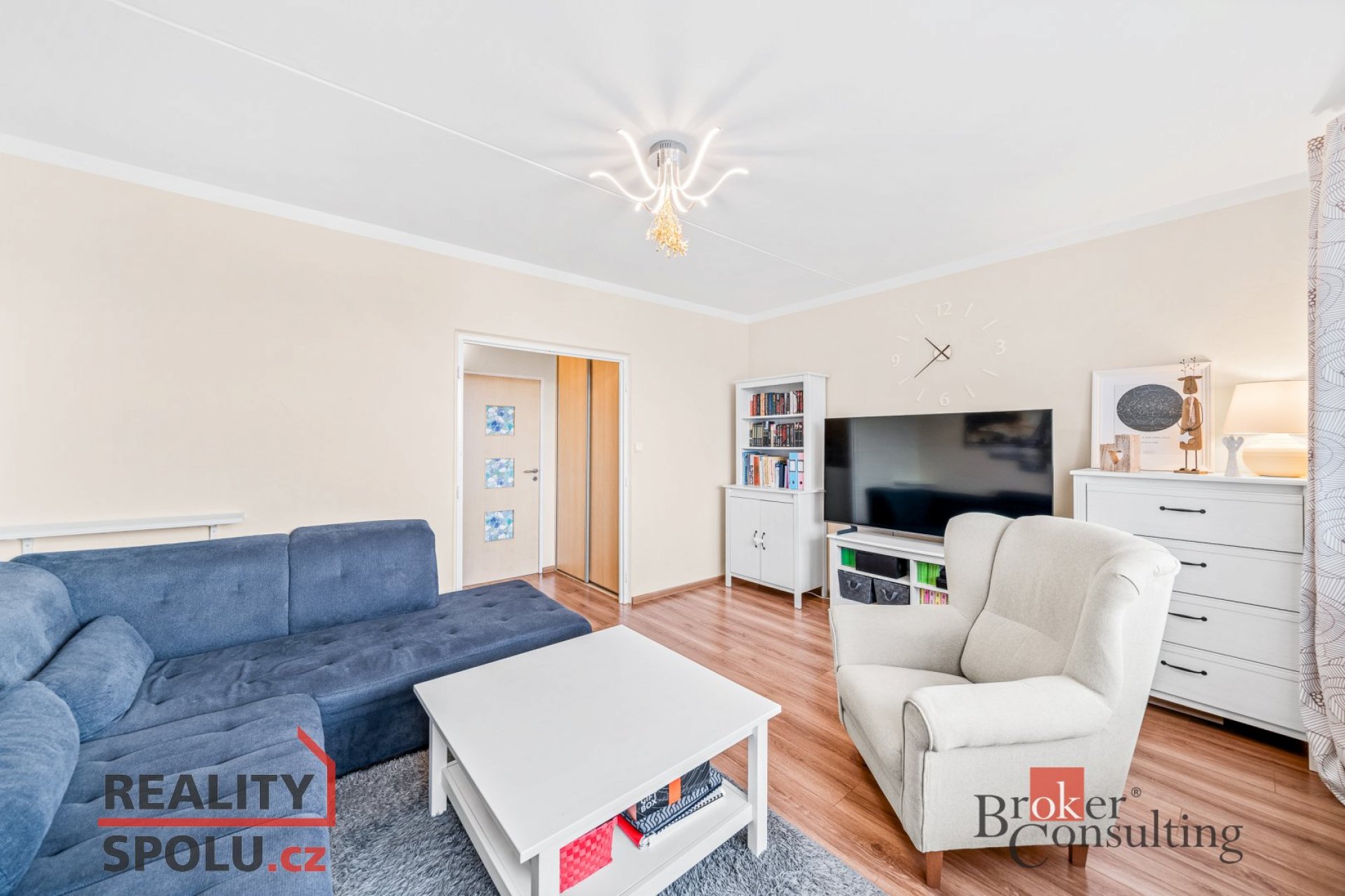 Byt je dispozičně velmi dobře řešený – prostorný obývací pokoj s lodžií, kuchyň s jídelním koutem, dvě neprůchozí ložnice, koupelna a samostatné WC. K bytu náleží také sklepní kóje.