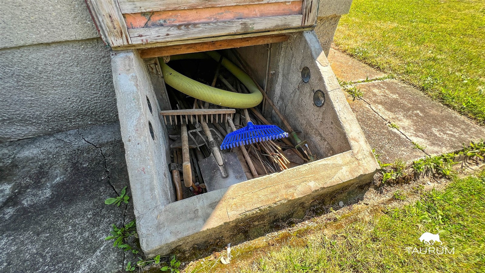 Součástí pozemku je zděná, podsklepená chata o zastavěné ploše 12 m². Chata je přízemní a je do ní zavedena elektřina. Na pozemek je zároveň přivedena voda z obecního vodovodu.