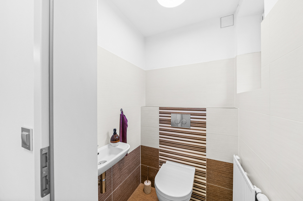 Patrový dům o zastavěné ploše 148 m2 a celkové užitné ploše cca 230 m2 prošel kompletní a velmi zdařilou a promyšlenou rekonstrukcí (kuchyně na míru vč. vestavných spotřebičů, nové koupelny, podlahové vytápění…).