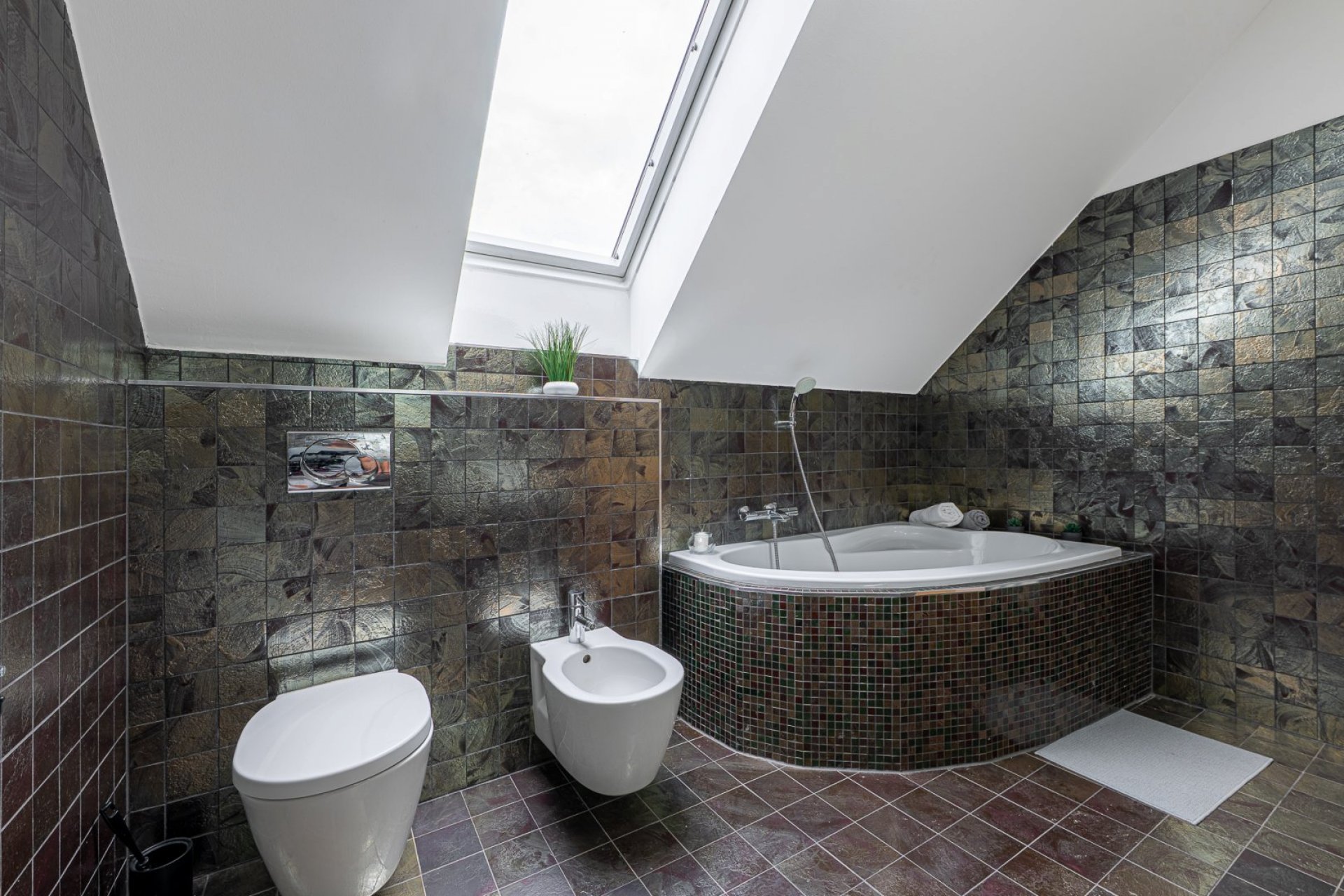 Ve 3. podlaží jsou umístěny tři samostatné a velmi prostorné pokoje, včetně hlavní ložnice o velikosti přes 21 m². Nechybí ani třetí, největší koupelna vybavená rohovou vanou, umyvadlem, WC a bidetem. Tato část domu působí klidně, vzdušně a nabízí příjemné výhledy do okolní zeleně. Praktickým bonusem je také půda, kterou noví majitelé využijí jako velkorysý úložný prostor pro sezónní věci, sportovní vybavení i další zázemí domácnosti.