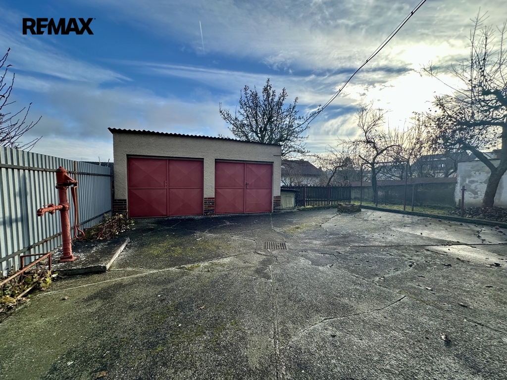 Na pozemku jsou dvě zděné garáže a jedno parkovací místo před domem, což zajišťuje dostatek prostoru pro vozidla.