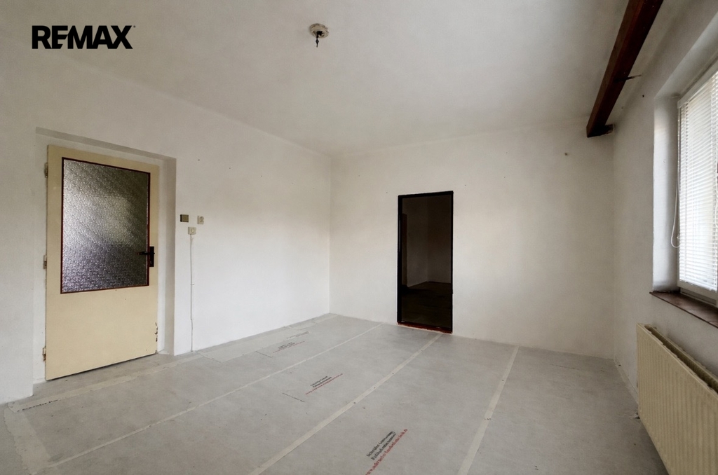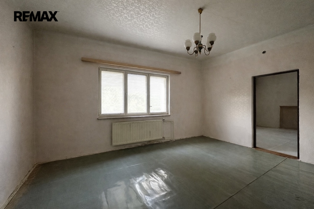 Dům disponuje přízemím s užitnou plochu 116 m². Hlavním vchodem vstoupíme do haly, která sloužila také jako jídelna. Z ní je pak vstup do jednotlivých pokojů a schody do podkroví. Dům je podsklepený. Ve sklepě je technická místnost a je zde prostor pro větší dílnu. Podkroví je připraveno pro Váš projekt. Můžete si jej dispozičně uzpůsobit dle Vašich potřeb.