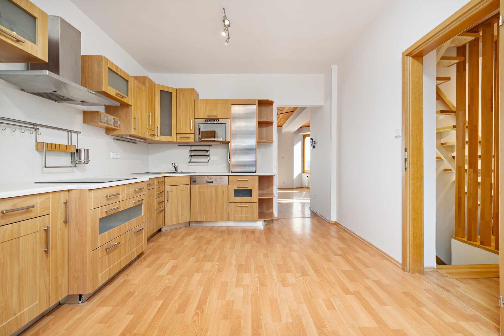 - obývací pokoj s krbem s vchodem na terasu, kuchyně s jídelním koutem, jídelna, dva samostatné pokoje,