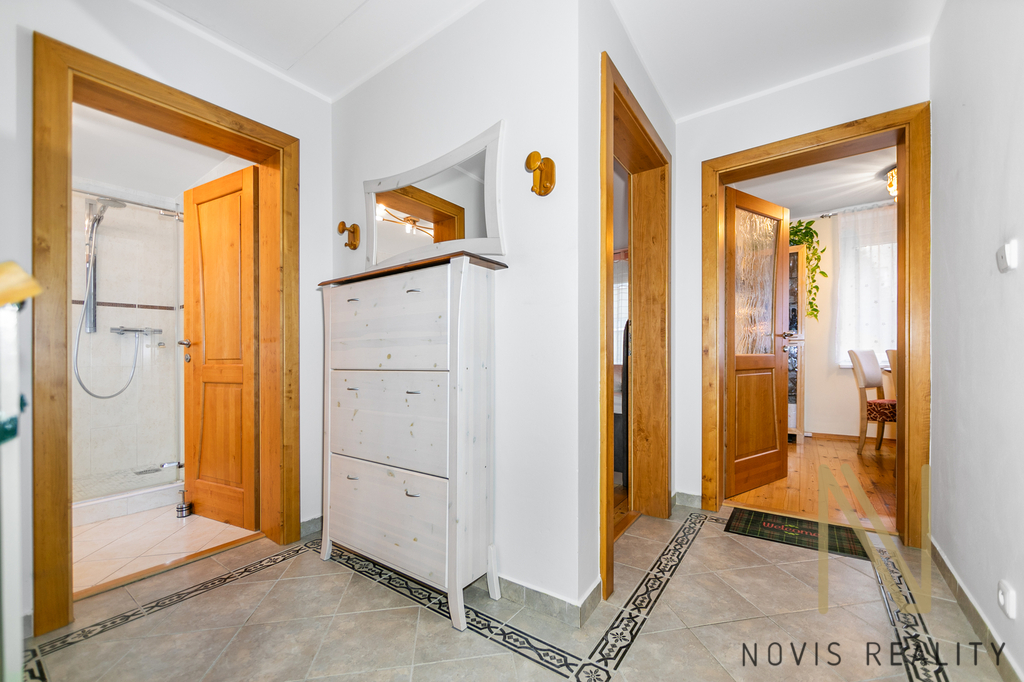 Součástí jsou tři bytové jednotky, v hlavním domě 2 krát 2+kk 60 m² a v přilehlé budově 2+kk 54 m², každá bytová jednotka má vlastní měřidla ( plyn, elektřina, voda) Dům je ideální pro vícegenerační bydlení nebo jako investiční příležitost s garantovaným výnosem z pronájmu. Dům je částečně podsklepený a současný majitel ho využívá jako kutilskou dílnu. Dům je bez budoucích investic.