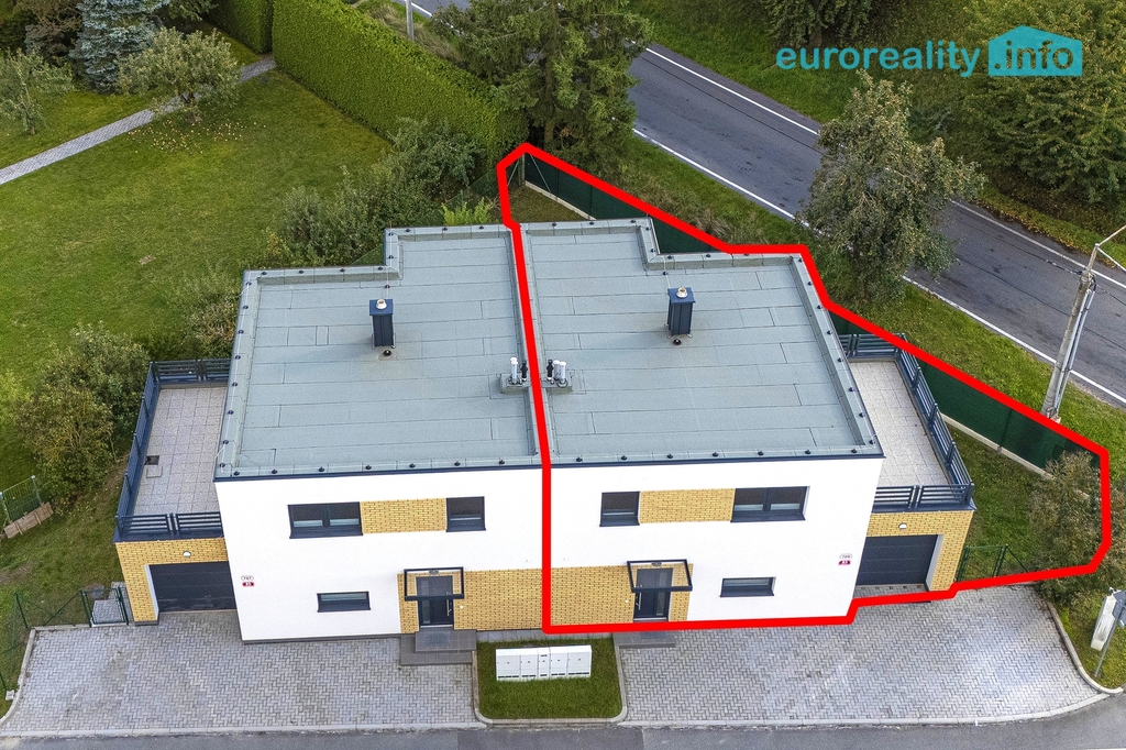 Dům je součástí dvojice domů postavených vedle sebe, přičemž je konstrukčně plně oddělený dilatační spárou, bez společných obvodových stěn a bez společné střešní konstrukce. Dům má samostatné přípojky inženýrských sítí, vlastní pozemek i oplocení, což zajišťuje vysokou míru soukromí a bydlení srovnatelné se samostatně stojícím rodinným domem.