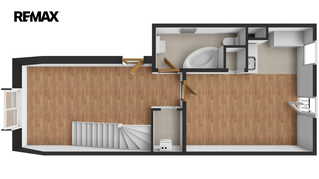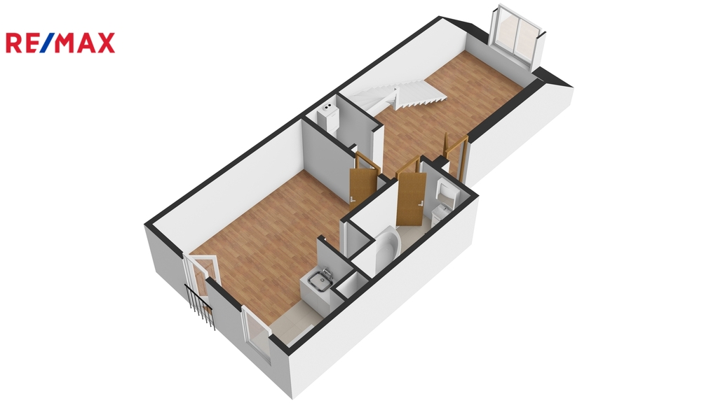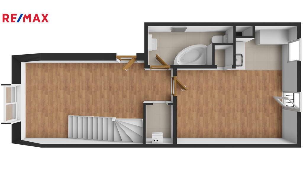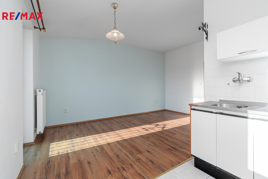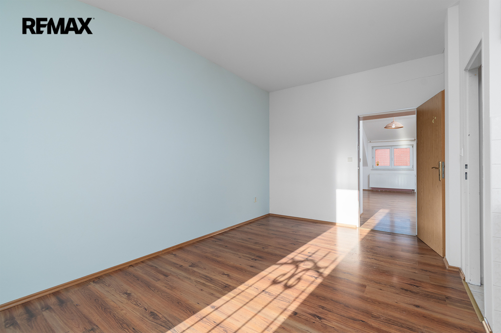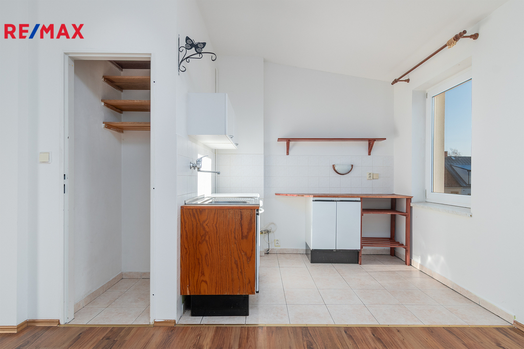 Byt sestává z prostorné kuchyně, obývacího pokoje, koupelny s WC, spíže, komory a ložnice, která je umístěna v patře viz přiložené orientační plánky.