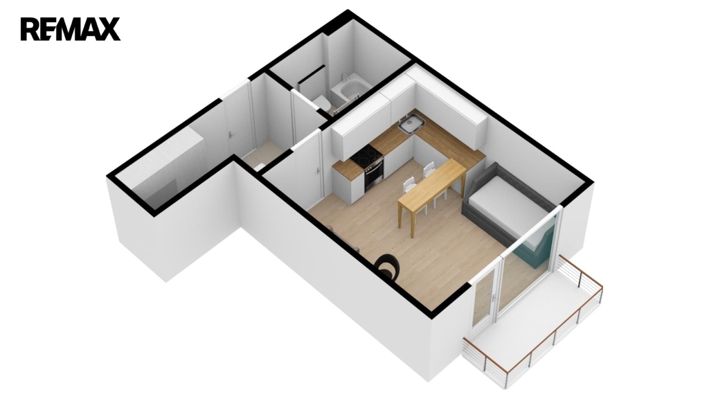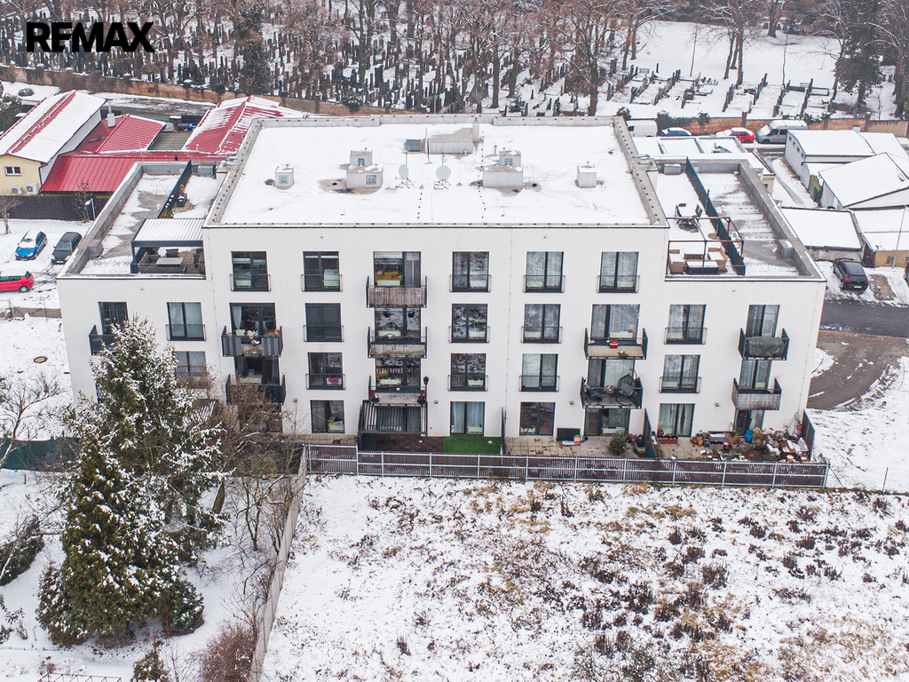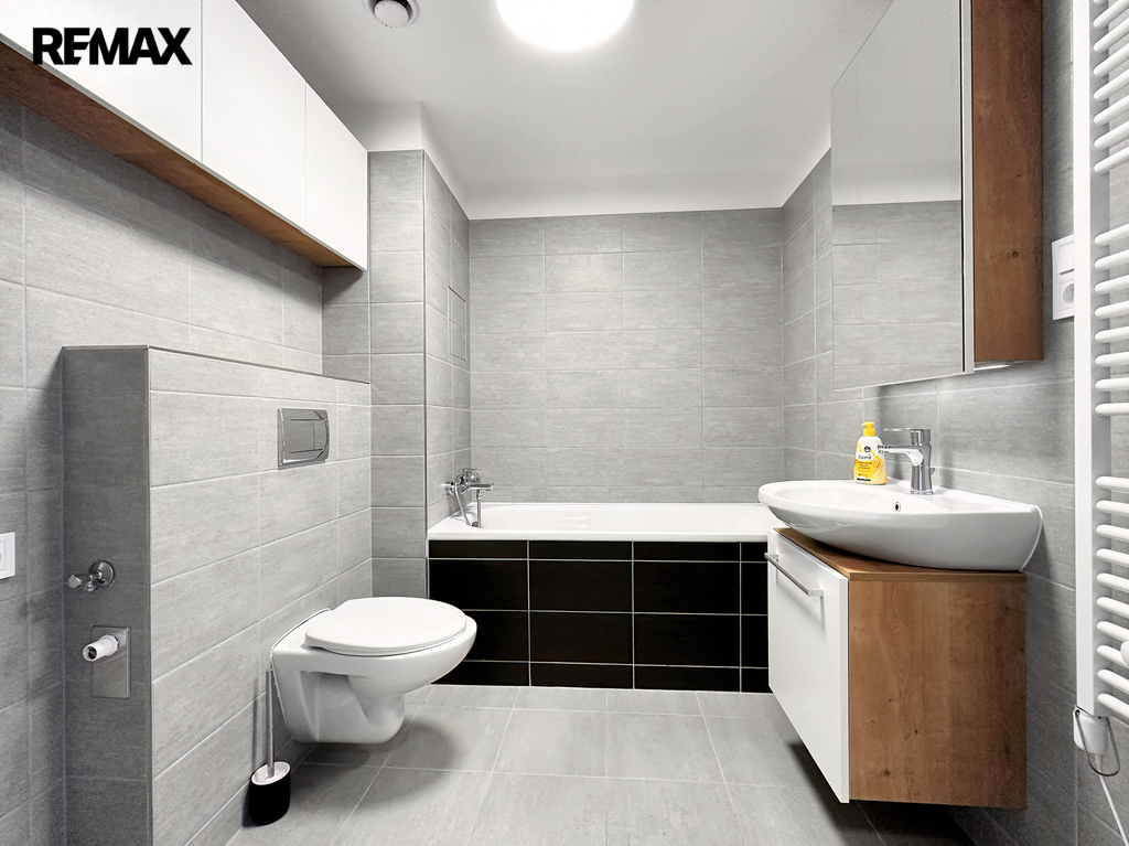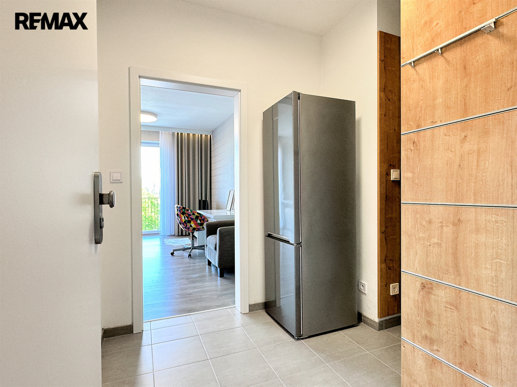 Prostor je prakticky řešen: vstupní chodba s prostornou vestavěnou skříní, koupelna s vanou a WC a hlavní obytná místnost s velkorysou kuchyňskou linkou vybavenou vestavěnými spotřebiči (elektrická trouba, sklokeramická varná deska, myčka nádobí). Díky velkému francouzskému oknu je obytná část světlá a slunná. Součástí bytu je také balkón, ideální pro ranní kávu, krátký odpočinek po práci nebo klidné posezení. Vytápění a ohřev vody jsou zajištěny ústředním plynovým vytápěním. Dům je moderní a dobře udržovaný a splňuje energetickou třídu PENB B, což znamená velmi úsporný provoz.