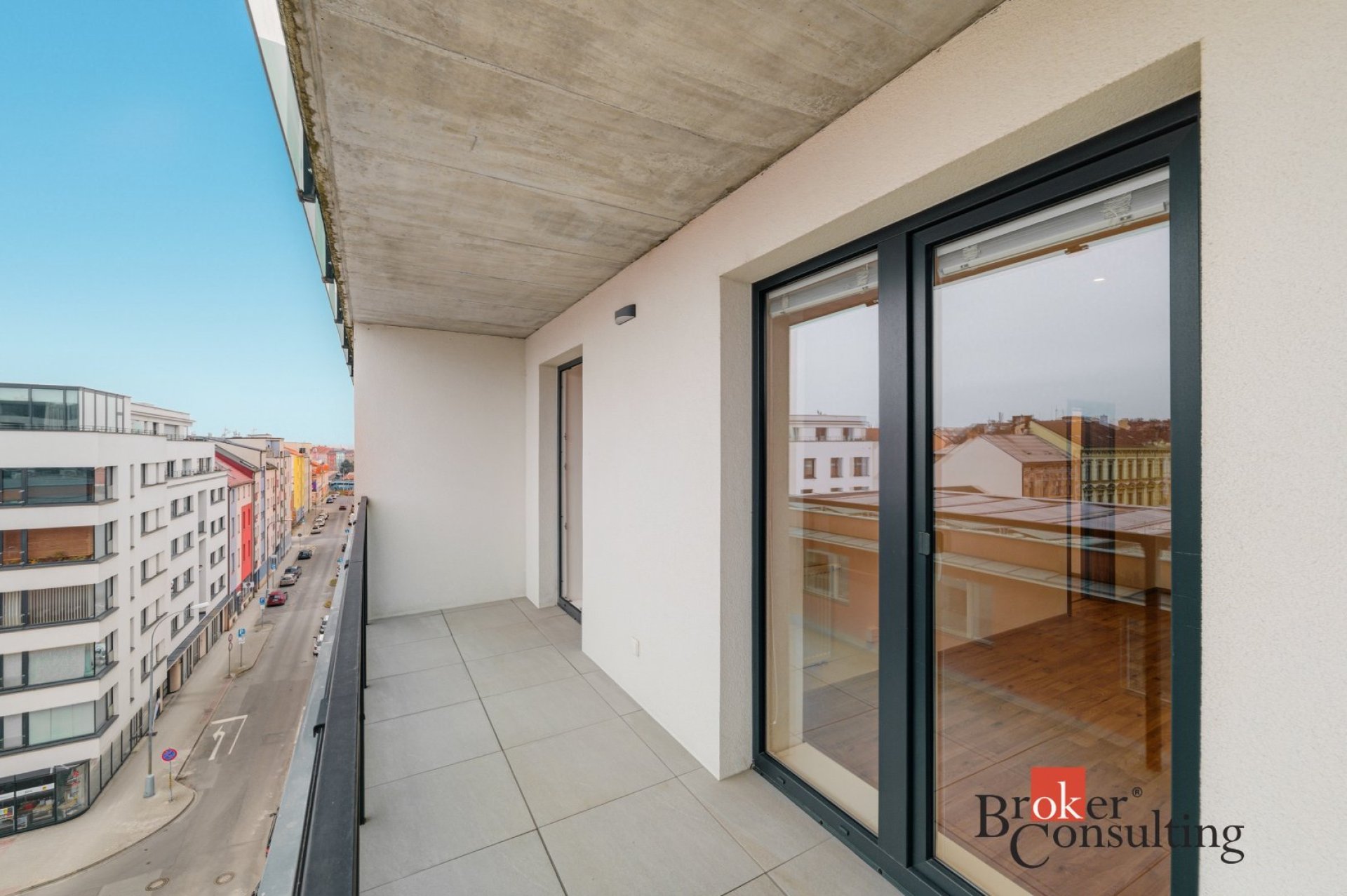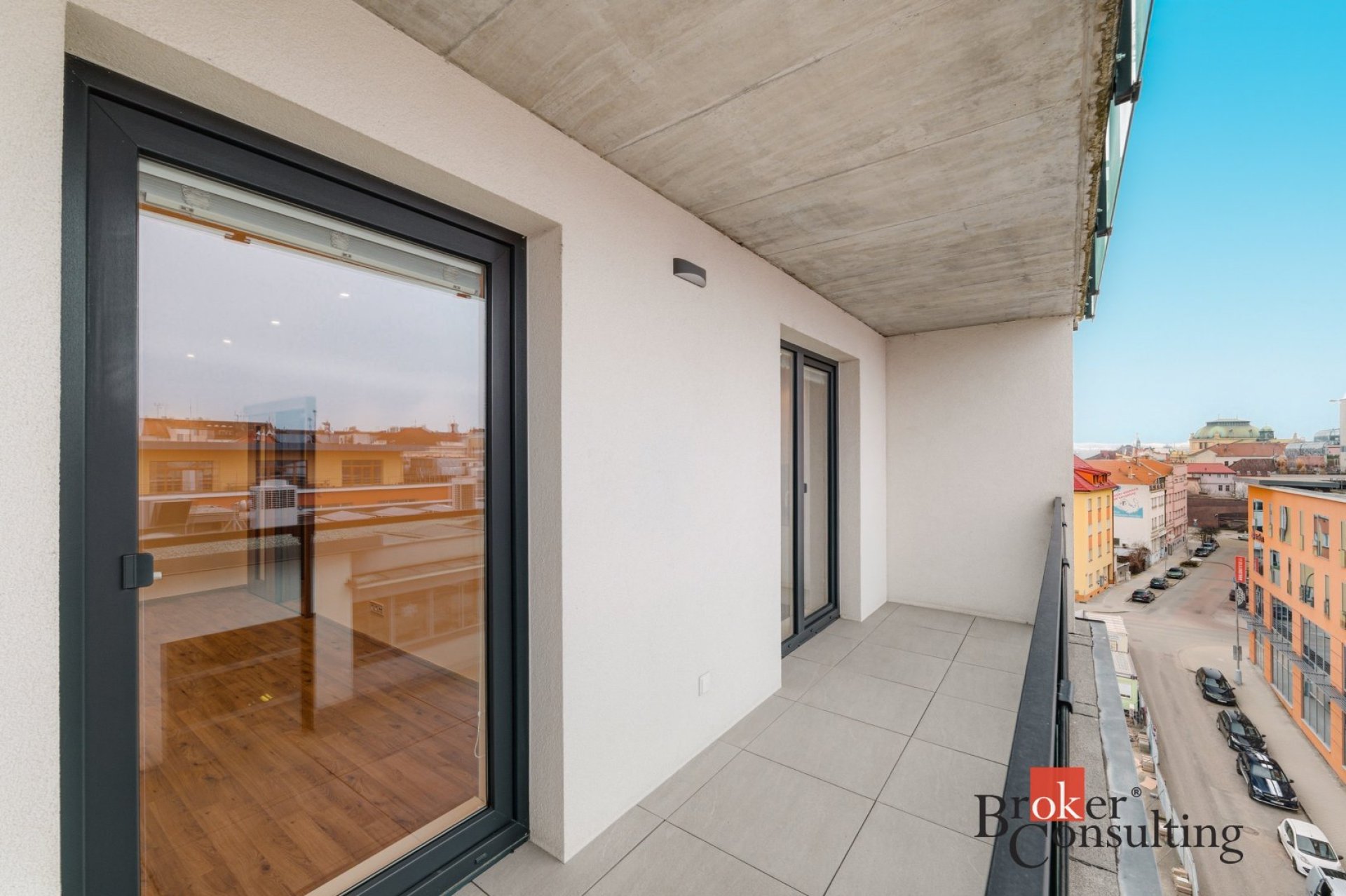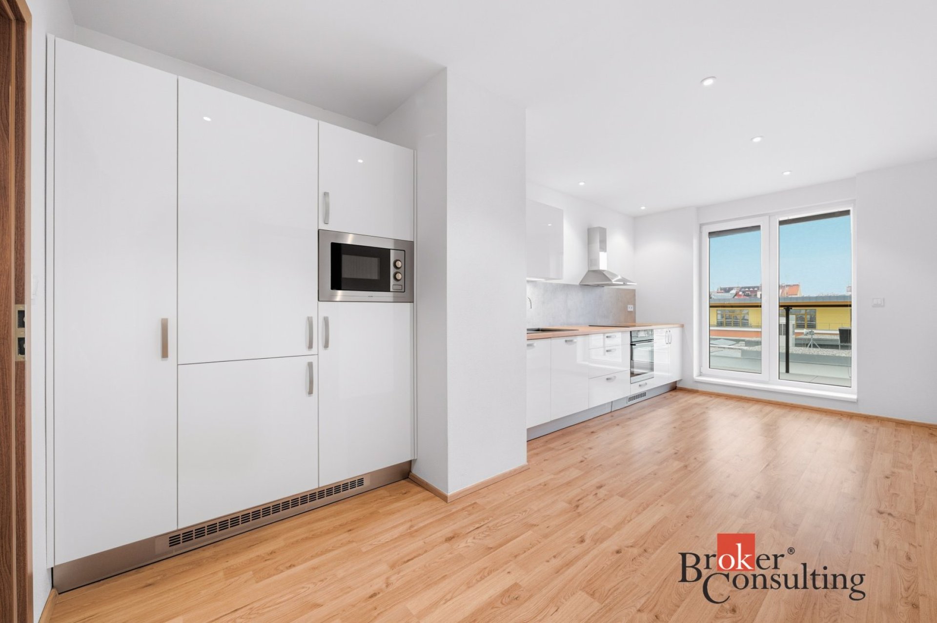 K pronájmu světlý byt o dispozici 1+1, který se nachází v 7. patře novostavby v ulici Poděbradova, na Jižním Předměstí v Plzni – jen pár minut pěšky od historického centra a náměstí Republiky.