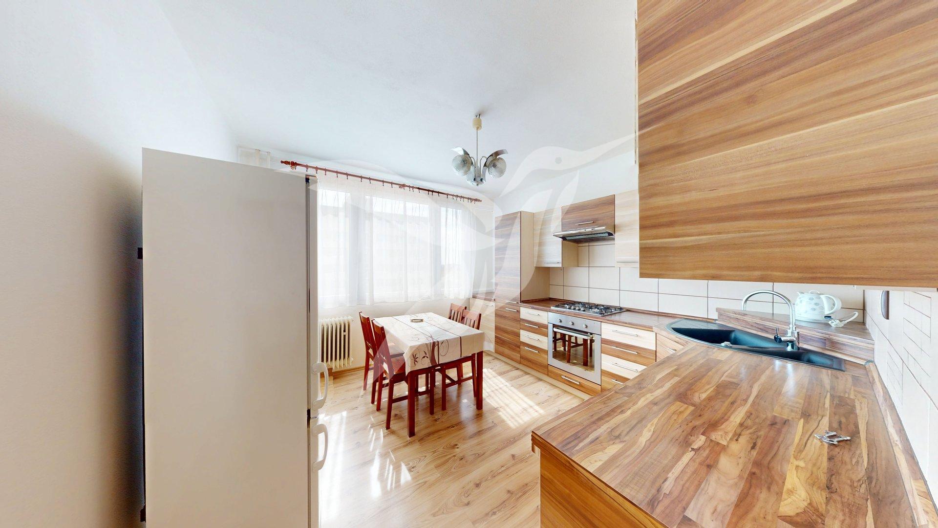 Bytová jednotka o velikosti 39 m2 se nachází v 6. NP panelového domu s výtahem a skládá se z předsíně, samostatného pokoje, pokoje včetně kuchyňské linky, koupelny, toalety a k bytu náleží i komora situovaná na patře bytového domu. Byt se pronajímá jako zařízený a jeho součásti je kuchyňská linka se spotřebiči (elektrická trouba, plynový sporák + digestoř, kombinovaná chladnička, MW trouba), dále jídelní set, sedací souprava, obývací/předsíňová stěna, vestavěná šatní skříň. Po domluvě je možnost nábytek i vystěhovat. Vytápění a ohřev vody je zajištěn dálkovými dodávkami.