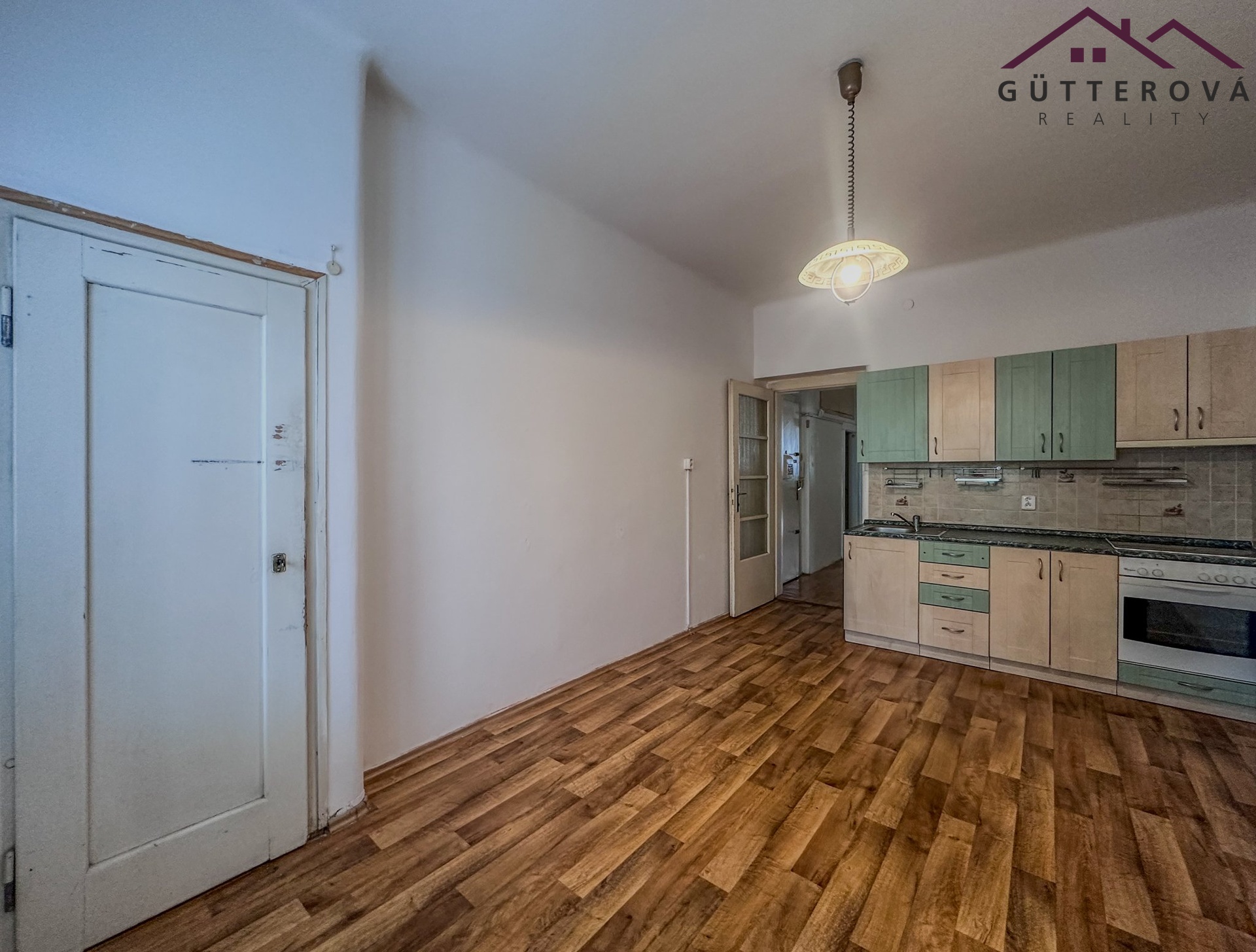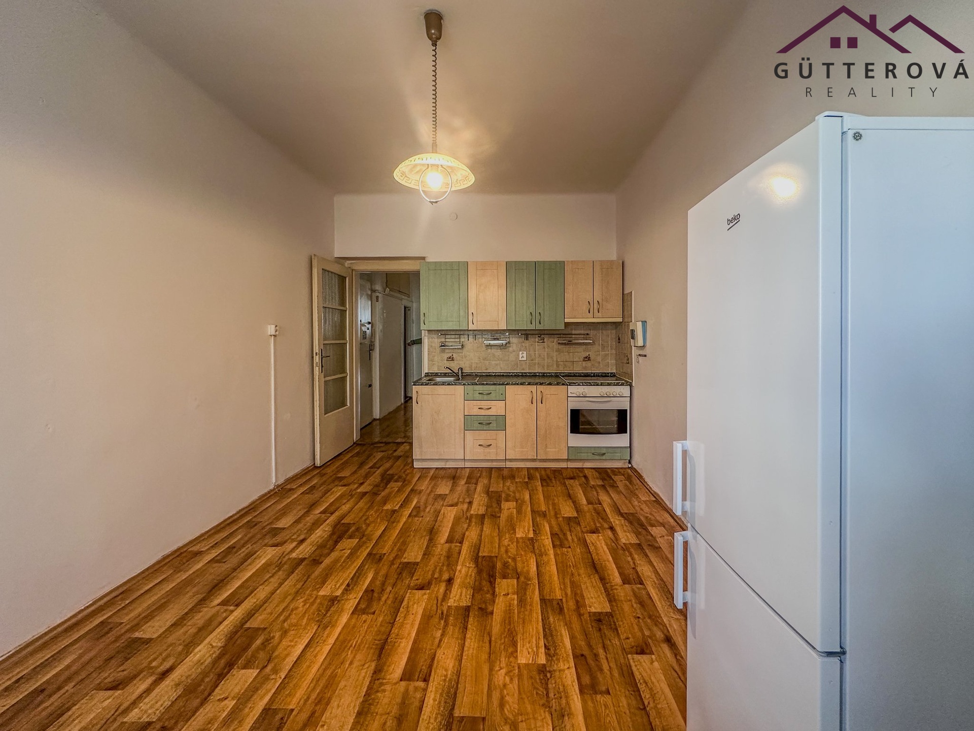V bytě zůstává nábytek a zařízení dle fotografií - lednice s mrazákem, kuchyňská linka, komoda, šatní textilní skříň.