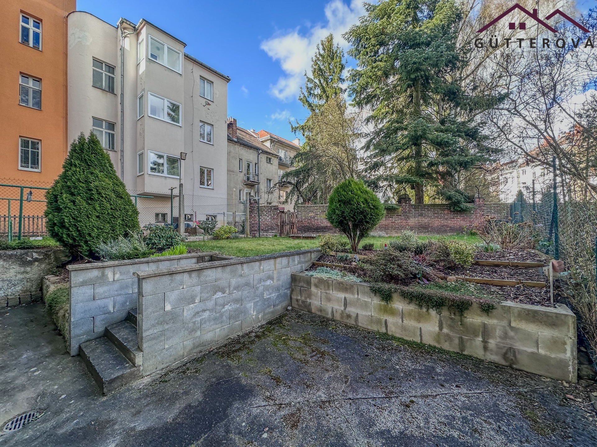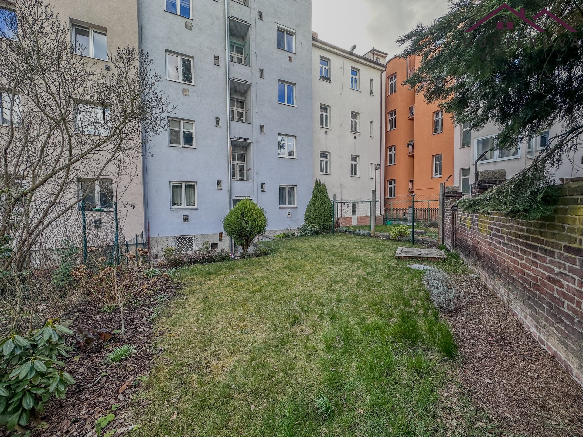 K dispozici je lodžie v mezipatře, sklepní kóje a zahradu ve vnitrobloku lze též užívat.