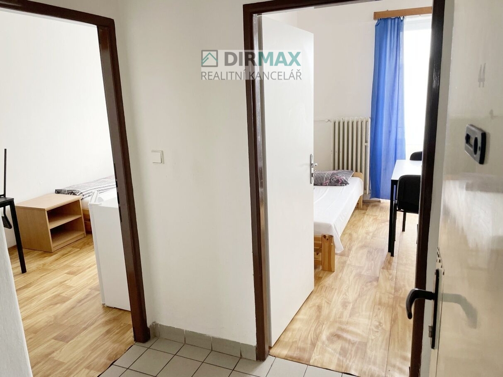 Ve výhradním zastoupení Vám nabízíme pronájem studentského bytu, kdy při vstupu je menší předsíně, ze které se vstupuje do dvou místností samostatně. Jsou tady dvě místnosti, každá je vybavená dvěma lůžky, skříněmi, nočními stolky, jídelním stolem se židlemi. Maximální počet osob v rámci jednoho bytu/buňky - 4. V každém pokoji je menší lednička s mrazákem. Vlastní sociální zařízení. Koupelna je od toalety oddělená, samostatný vstup. Jádro je zděné. V koupelně je sprchový kout a další sanitární keramika. Vše je vzájemně neprůchozí. Kuchyň je společná. Velkou výhodou je, že voda i topení je zajištěno dálkově, tedy centrálně. Je zde i kompletní připojení k internetu. Cena měsíčního nájmu na osobu je 4.600,-Kč, kdy v ceně jsou veškeré služby i energie. V částce je voda, topení, osv. spol. prostor, energie, internet, úklid i pravidelné doplňování toaletních potřeb vč. lůžkovin. Těchto bytových buněk po 4 lůžkách je tady k pronájmu několik. Je možné pronajímat jednotlivá lůžka nebo i pokoje!