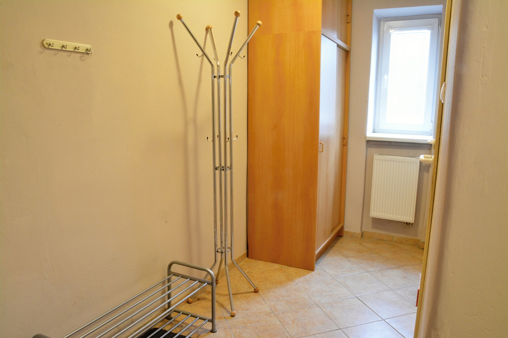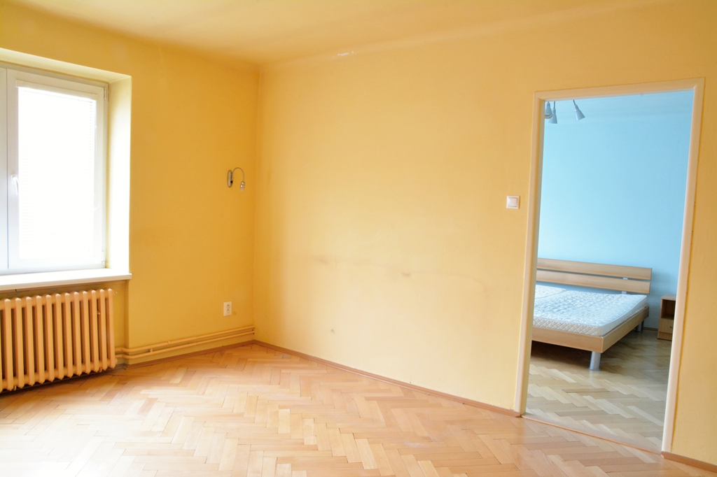 Dispozice bytu: velká předsíň s úložnými prostory, samostatné WC, koupelna i kuchyně. U kuchyně dále samostatná spíž s oknem. Dále jsou zde dvě obytné místnosti, kde jsou revitalizovány parkety (obývací pokoj i ložnice). V předsíni, kuchyni včetně koupelny i WC je dlažba.